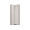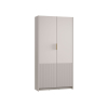 Внутри распашных шкафов достаточно места для хранения сезонной и повседневной одежды, а также обуви и аксессуаров. Фактурная отделка нижней части фасадов придает пространству визуальный объем. Акцентные ручки выступают привлекательными деталями интерьера.