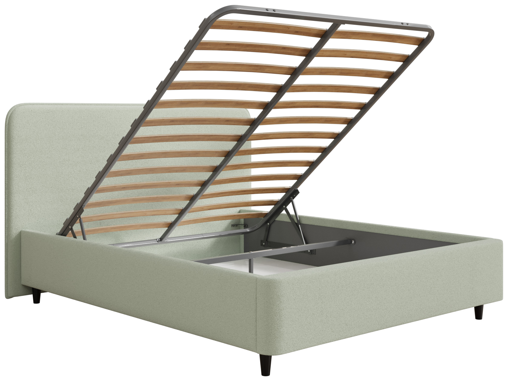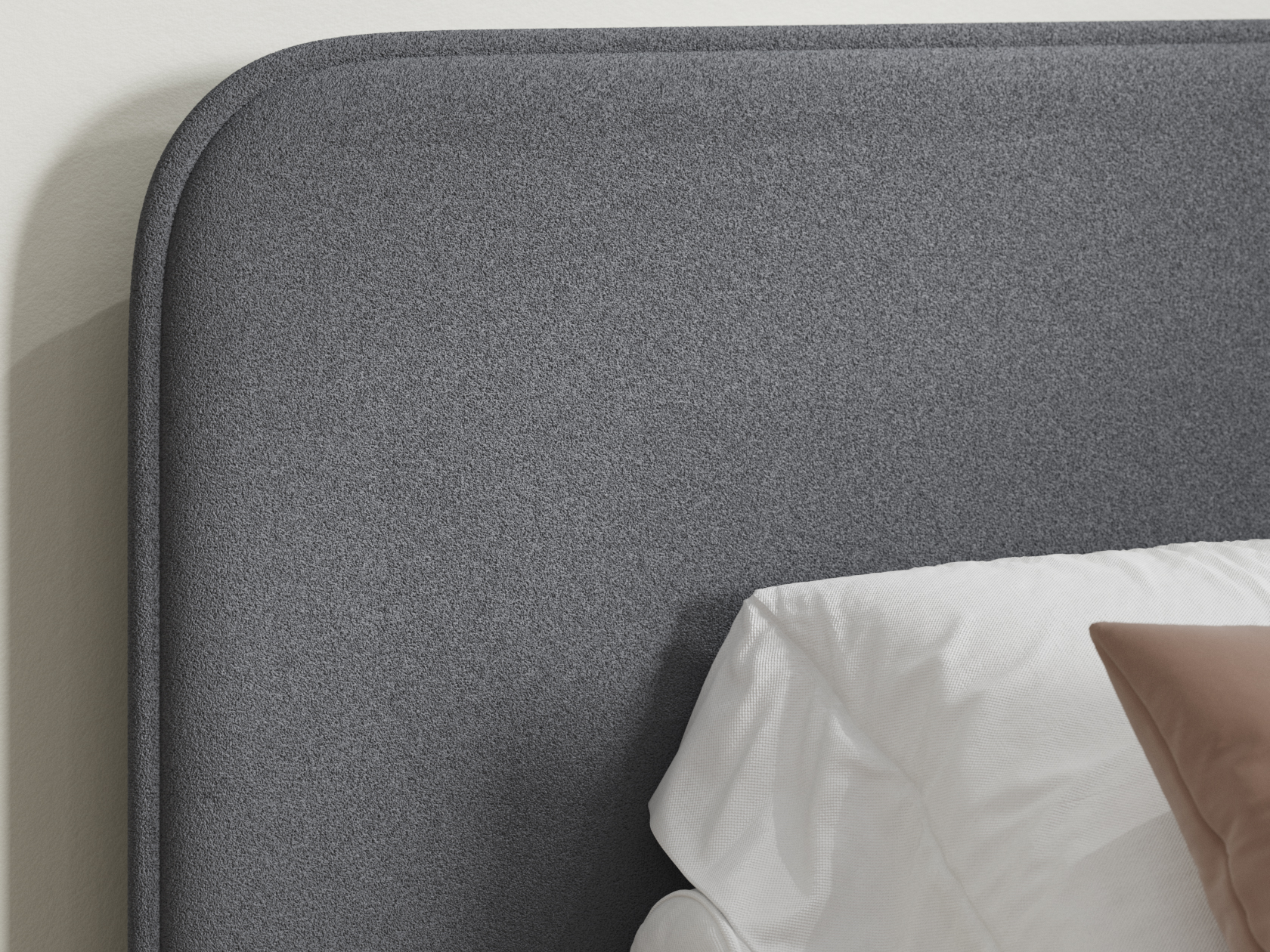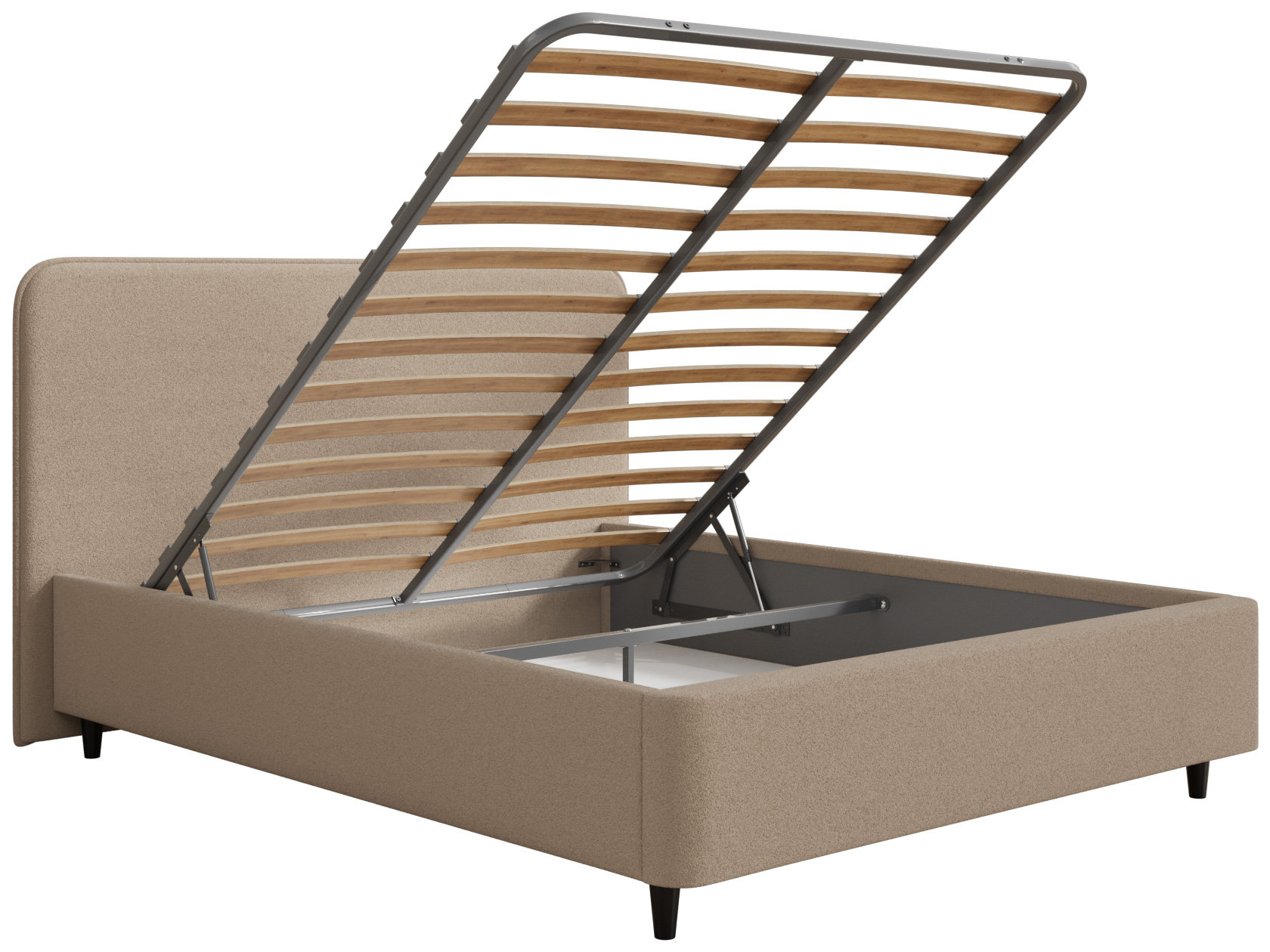 Плавные линии и высокое изголовье подчеркивают элегантный дизайн модели, а мягкая обивка и отсутствие острых углов создают дополнительный комфорт во время отдыха. Вместительный короб для белья удобен для хранения одеял, пледов и других постельных принадлежностей. Небольшие ножки придают конструкции легкость и облегчают уборку.