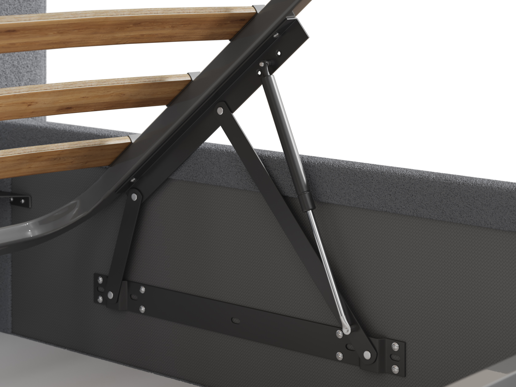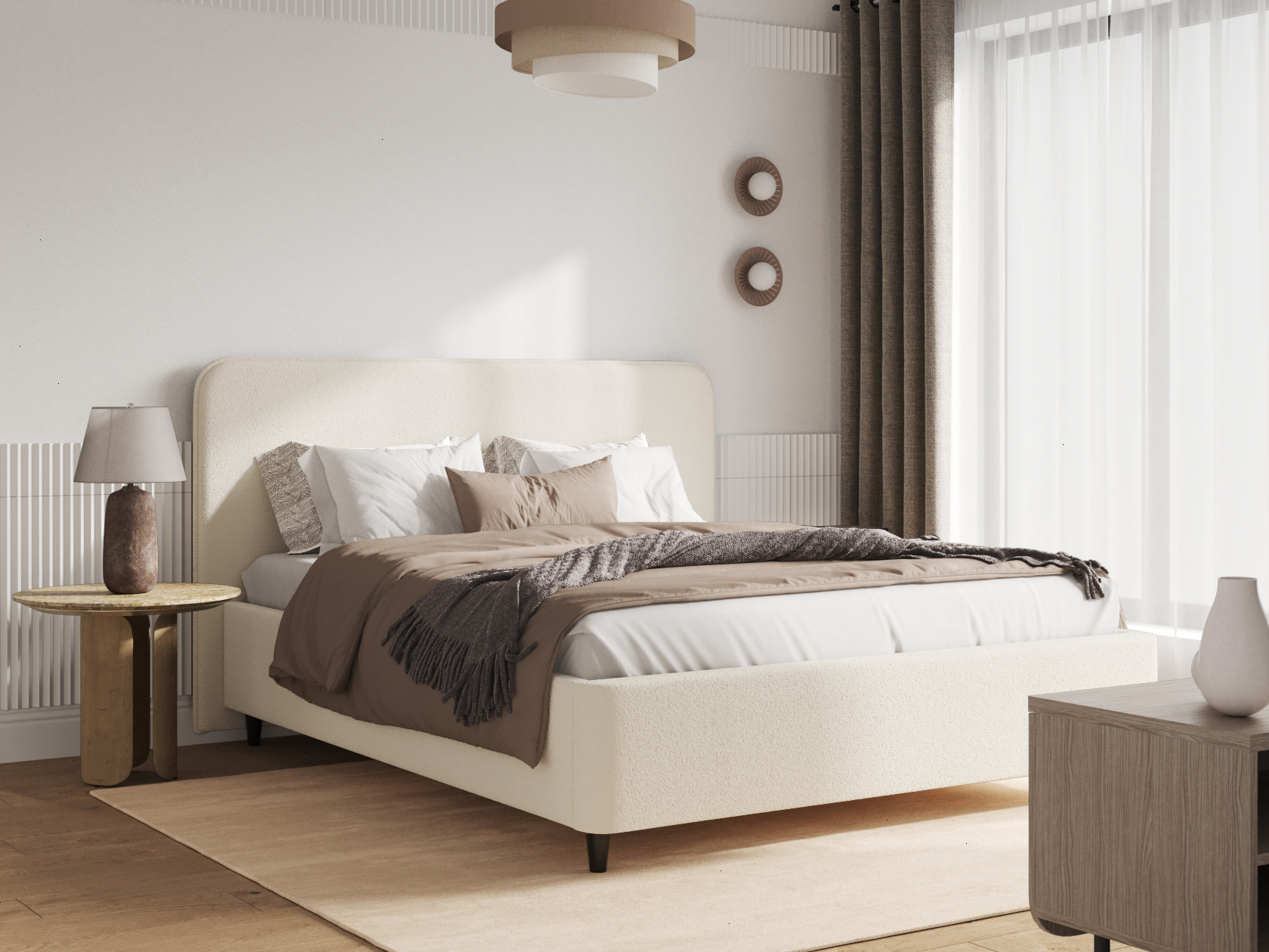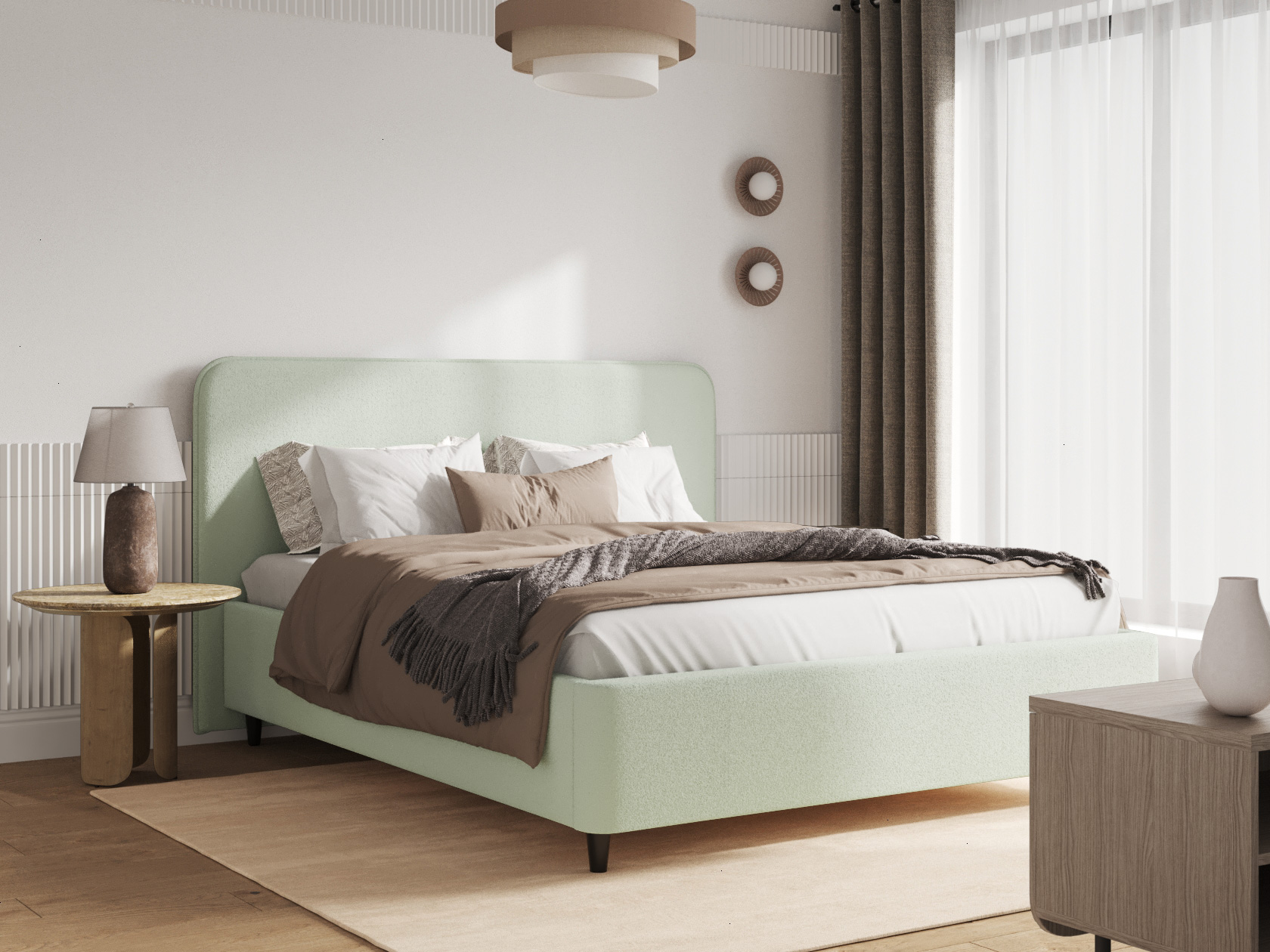 Плавные линии и высокое изголовье подчеркивают элегантный дизайн модели, а мягкая обивка и отсутствие острых углов создают дополнительный комфорт во время отдыха. Вместительный короб для белья удобен для хранения одеял, пледов и других постельных принадлежностей. Небольшие ножки придают конструкции легкость и облегчают уборку.