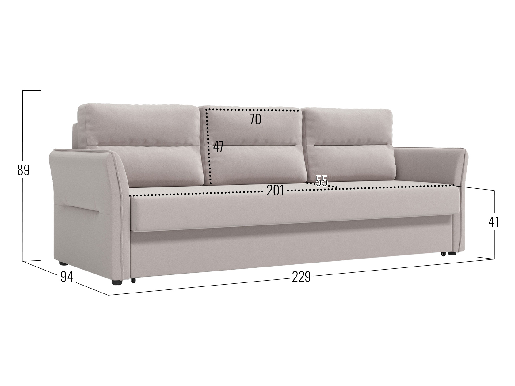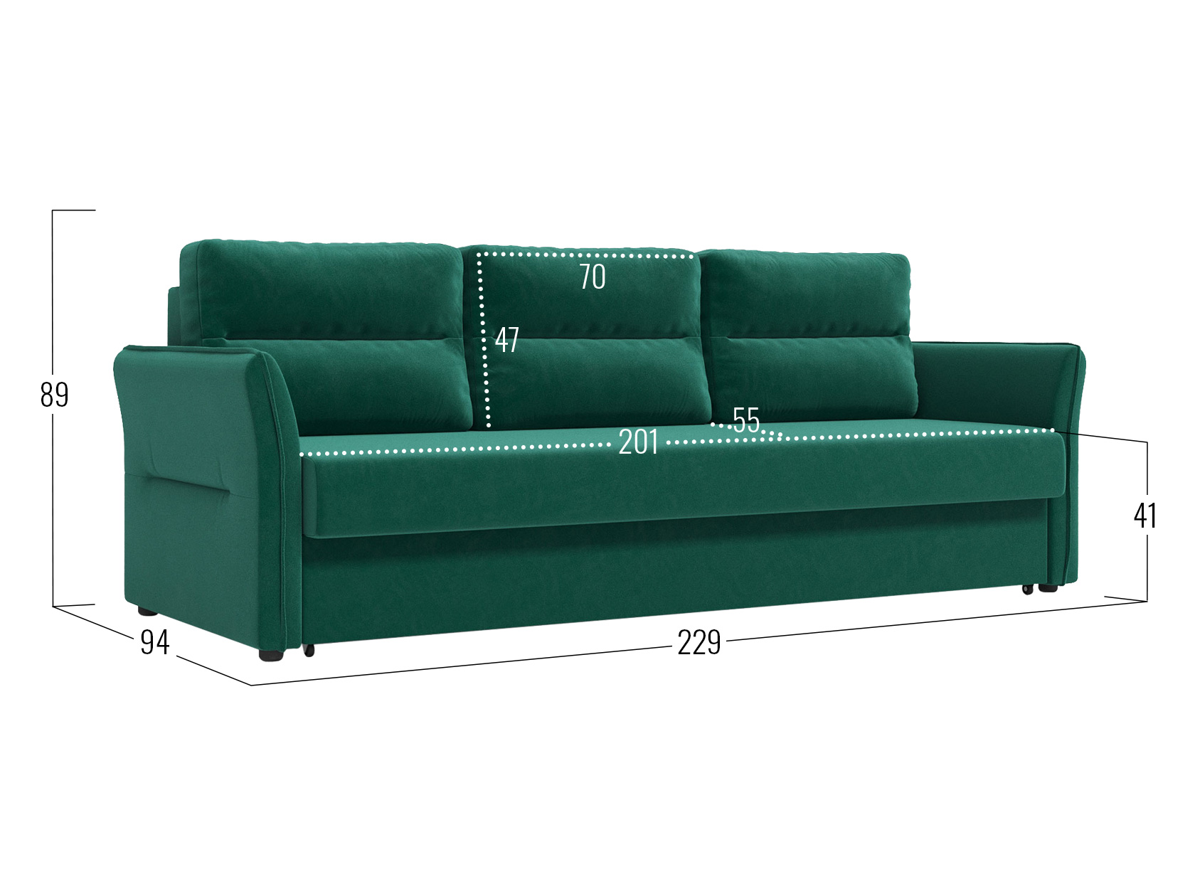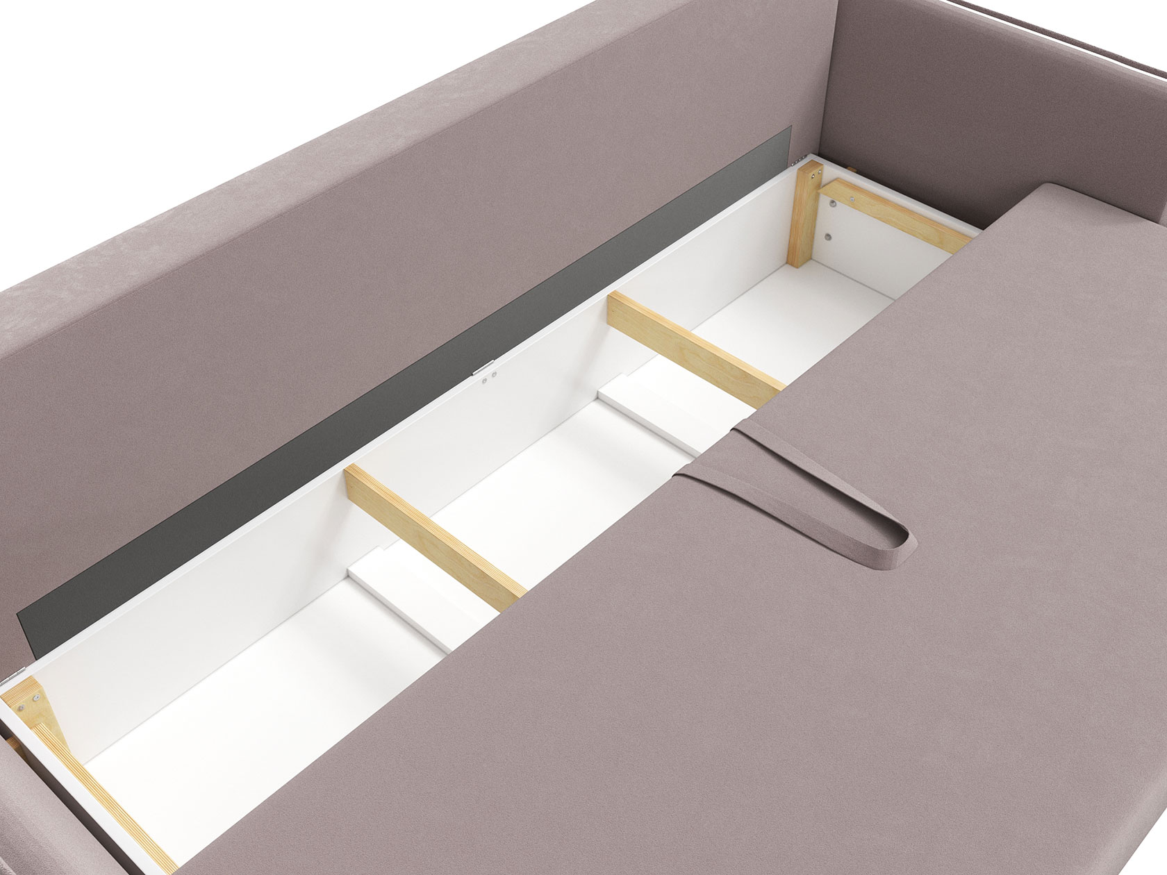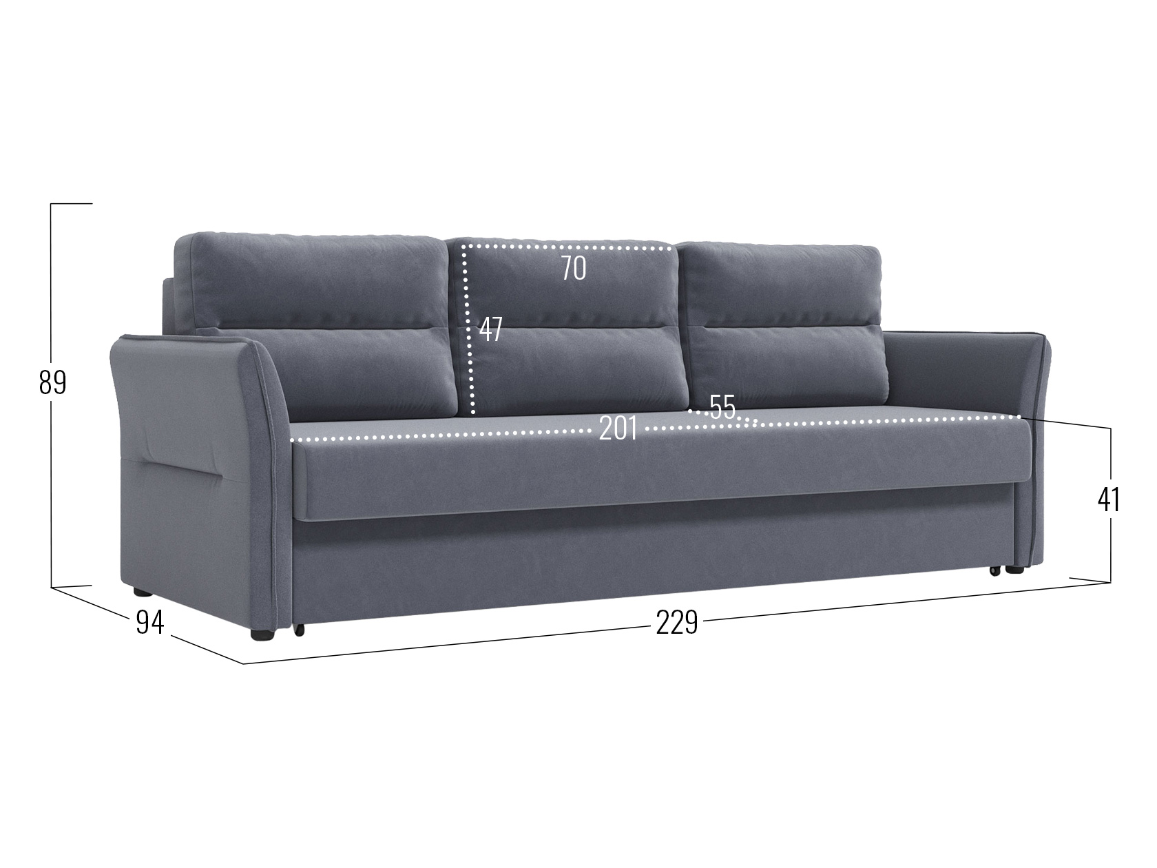 Простой и надежный механизм трансформации превращает диван в кровать, а компактный ящик для белья обеспечивает дополнительное место для хранения. Мягкая обивка приятна на ощупь и устойчива к износу. Возможность установить модель спинкой на виду — еще одно преимущество.