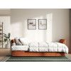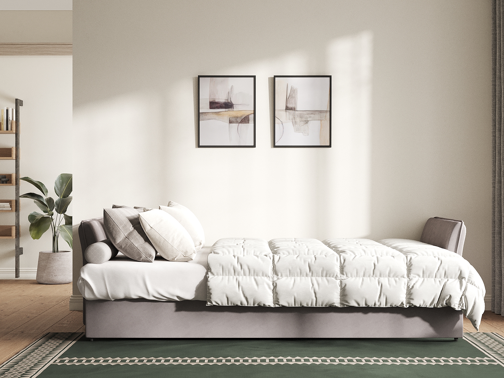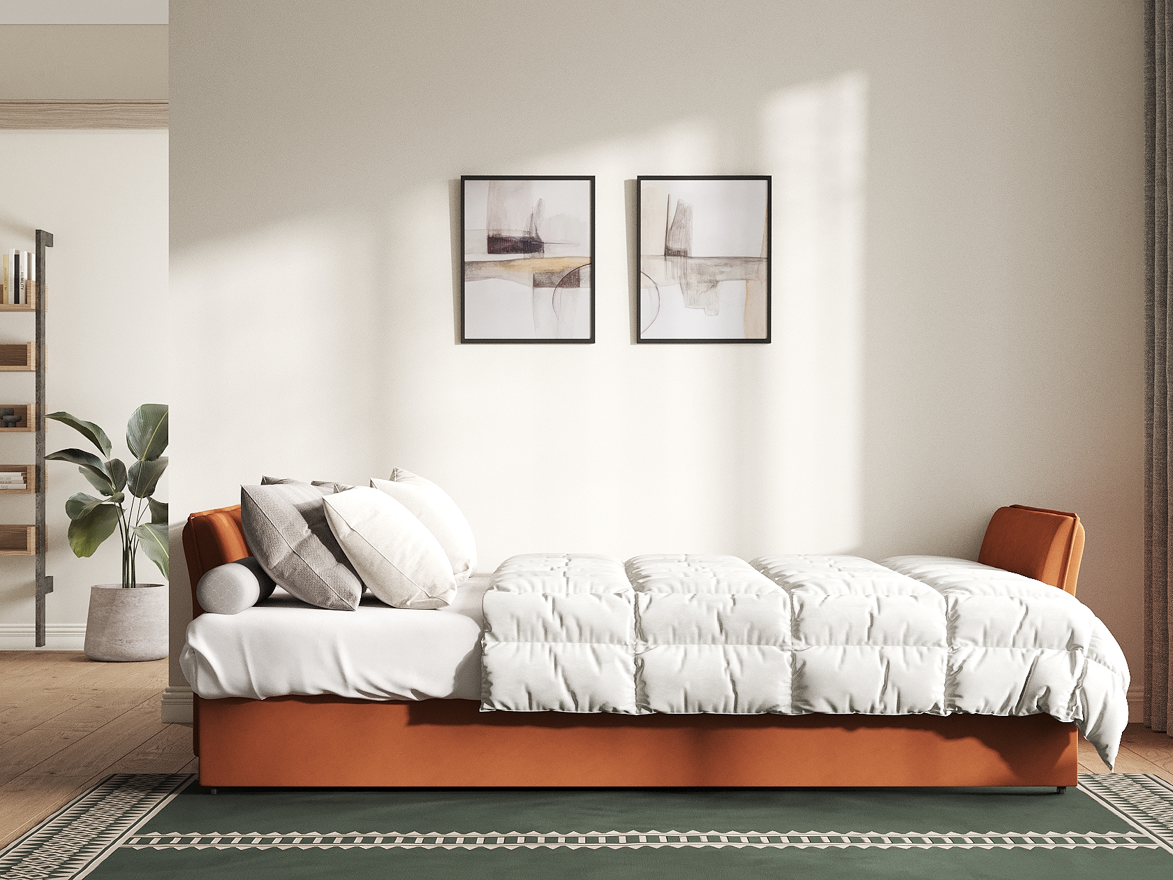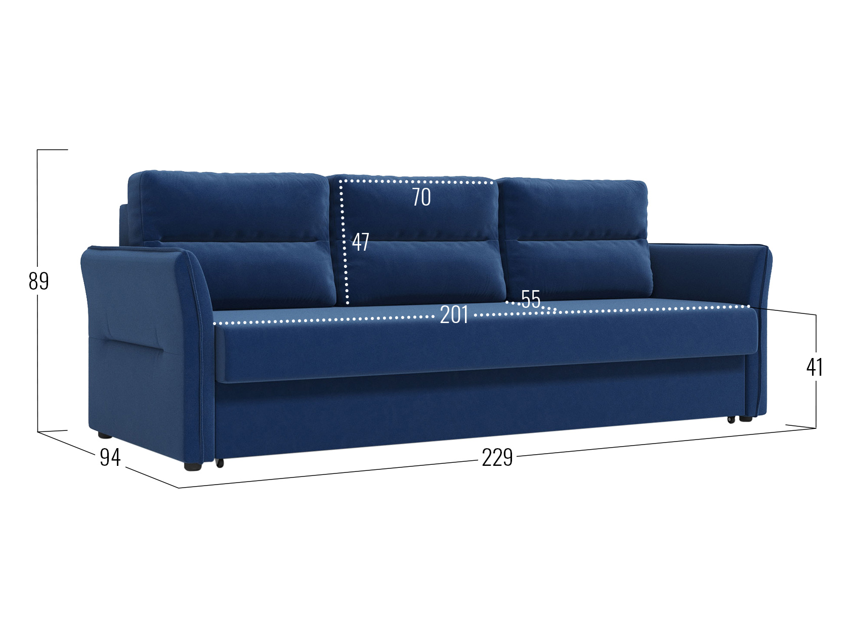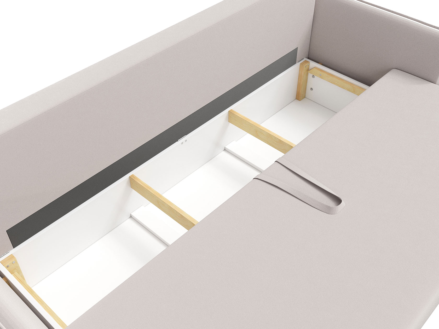 Простой и надежный механизм трансформации превращает диван в кровать, а компактный ящик для белья обеспечивает дополнительное место для хранения. Мягкая обивка приятна на ощупь и устойчива к износу. Возможность установить модель спинкой на виду — еще одно преимущество.