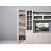 Съемные полки обеспечивают место для текстиля, белья и аксессуаров. Компактные ширина и глубина позволяют установить мебель даже в ограниченном пространстве. Классический рамочный фасад дополнен фрезерованными линиями и контрастной металлической ручкой.