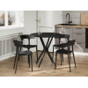 В комплекте предусмотрены четыре удобных стула и небольшой стол с круглой столешницей. В дизайне мебели нет ничего лишнего, поэтому ее легко адаптировать под различные стили интерьера. Материал непритязателен в уходе, что позволяет легко удалять возникающие загрязнения.