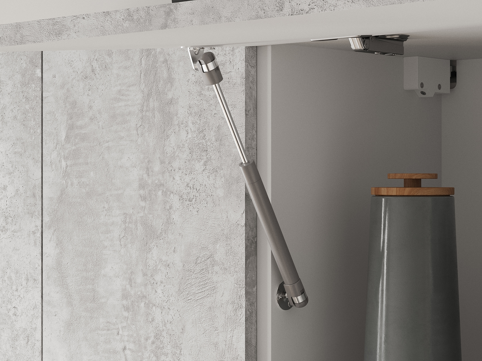 Фурнитура дверей антресольных шкафов: подъемник с газовым кронштейном.