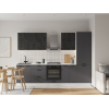 Расположение элементов позволяет удобно разместить посуду, продукты и различную утварь. Для комфортной эксплуатации выдвижные ящики укомплектованы качественными направляющими, а откидные дверцы антресольных шкафов легко фиксируются с помощью газлифта.