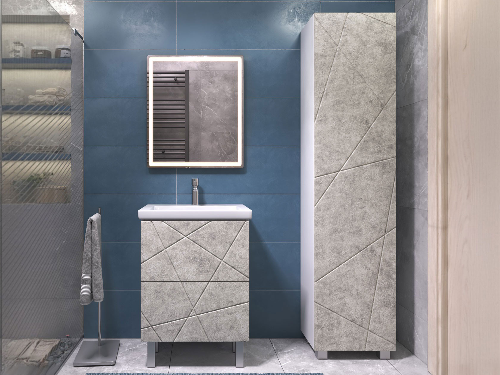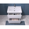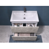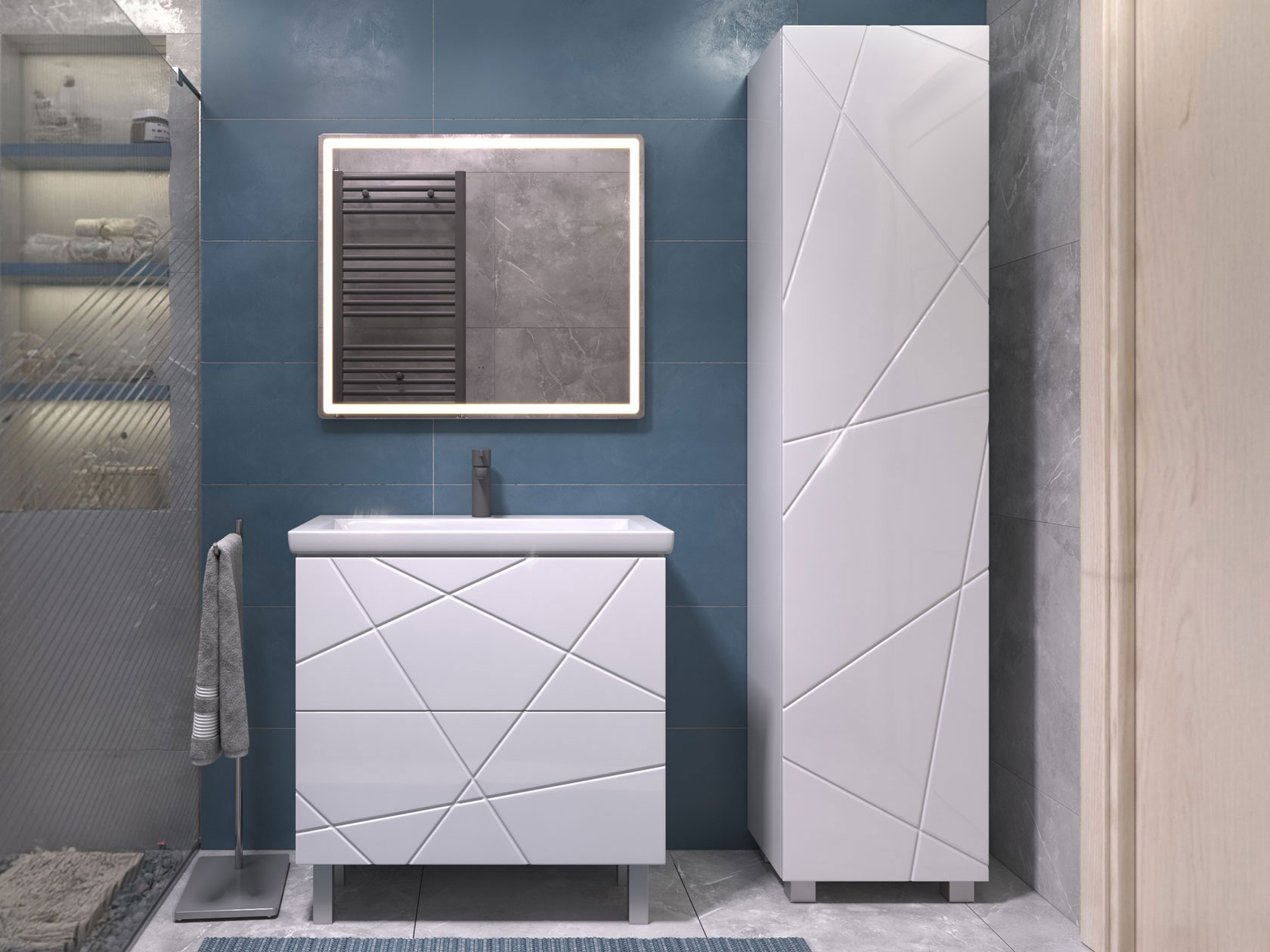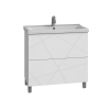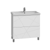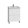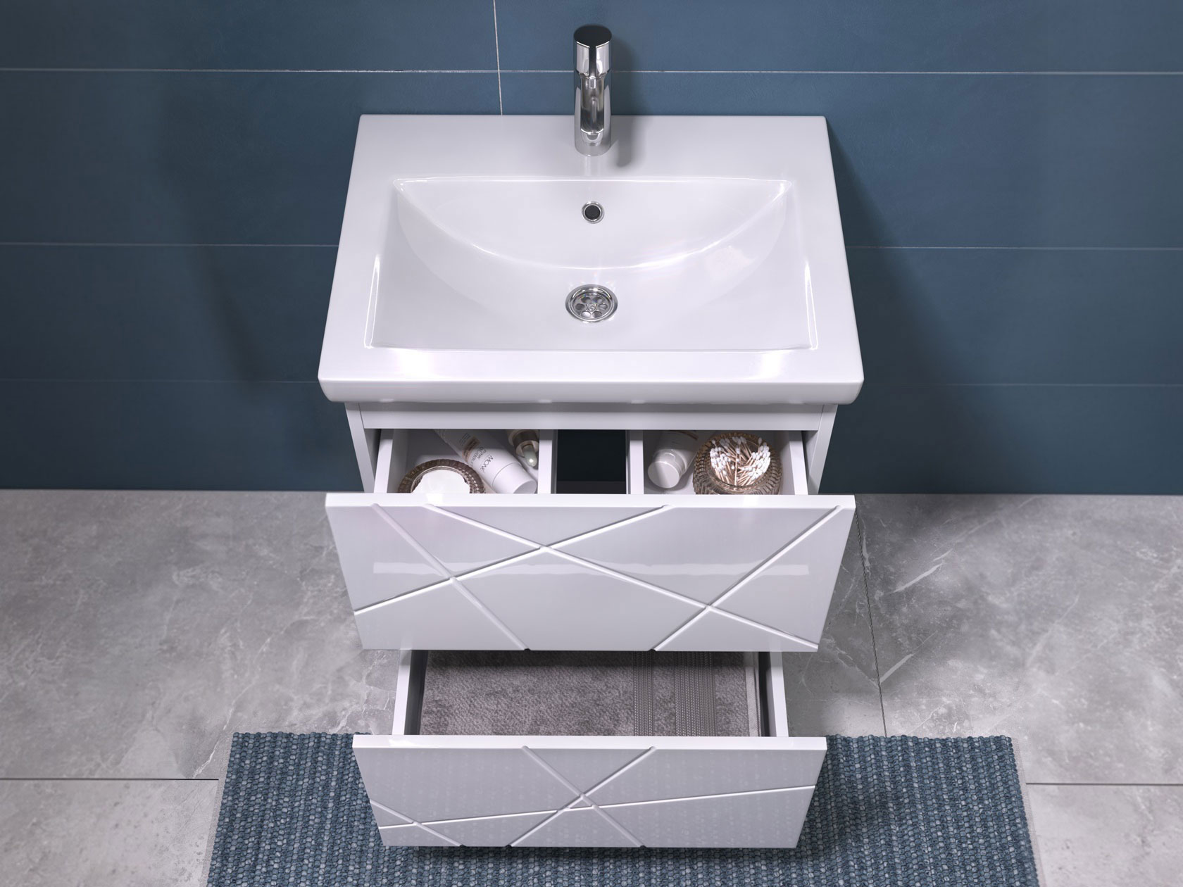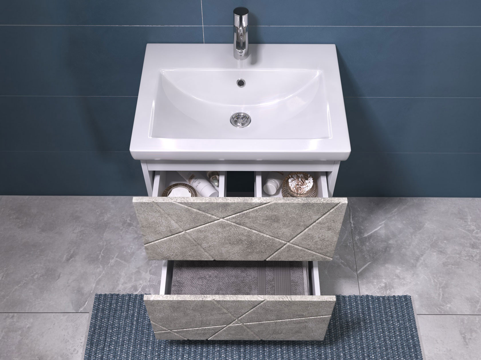 Трендовая фрезеровка добавляет интерьеру динамики. Модель оснащена двумя вместительными выдвижными ящиками с механизмом плавного закрывания. Внутри можно хранить предметы первой необходимости, косметику и бытовую химию. Регулируемые опоры придают конструкции устойчивость и облегчают уборку.