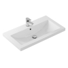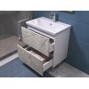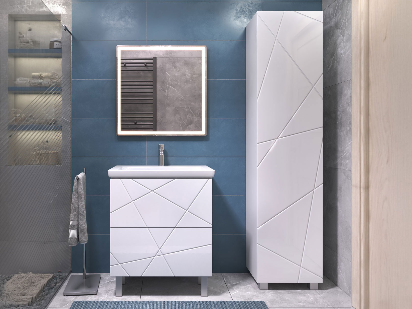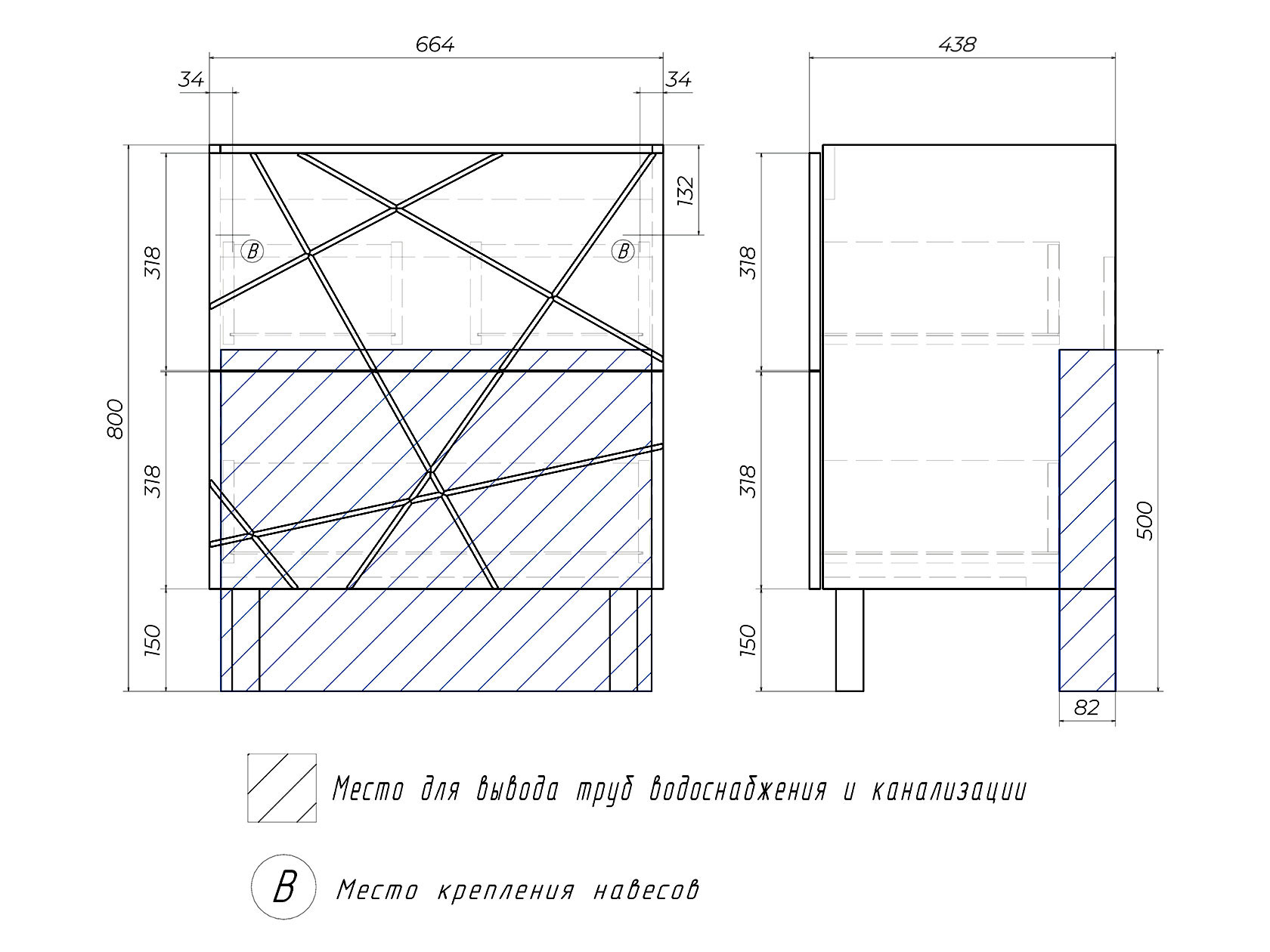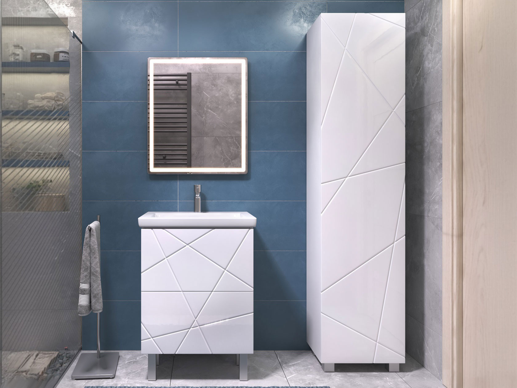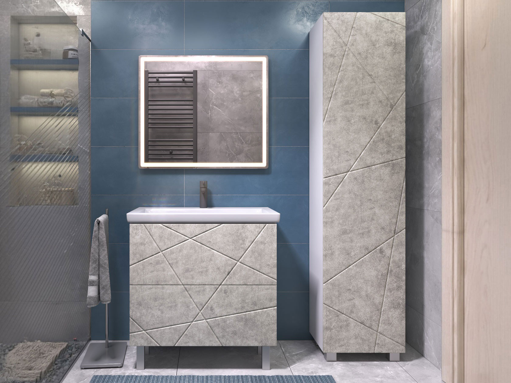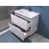 Трендовая фрезеровка добавляет интерьеру динамики. Модель оснащена двумя вместительными выдвижными ящиками с механизмом плавного закрывания. Внутри можно хранить предметы первой необходимости, косметику и бытовую химию. Регулируемые опоры придают конструкции устойчивость и облегчают уборку.