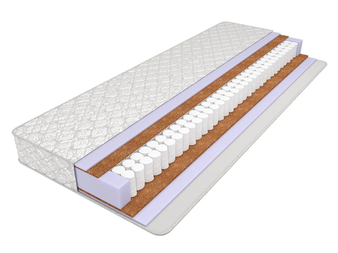 Независимость хода пружин, отсутствие шороха и скрипа обеспечивают индивидуальные чехлы. Прослойка из натуральной кокосовой койры придает матрасу дополнительную жесткость.