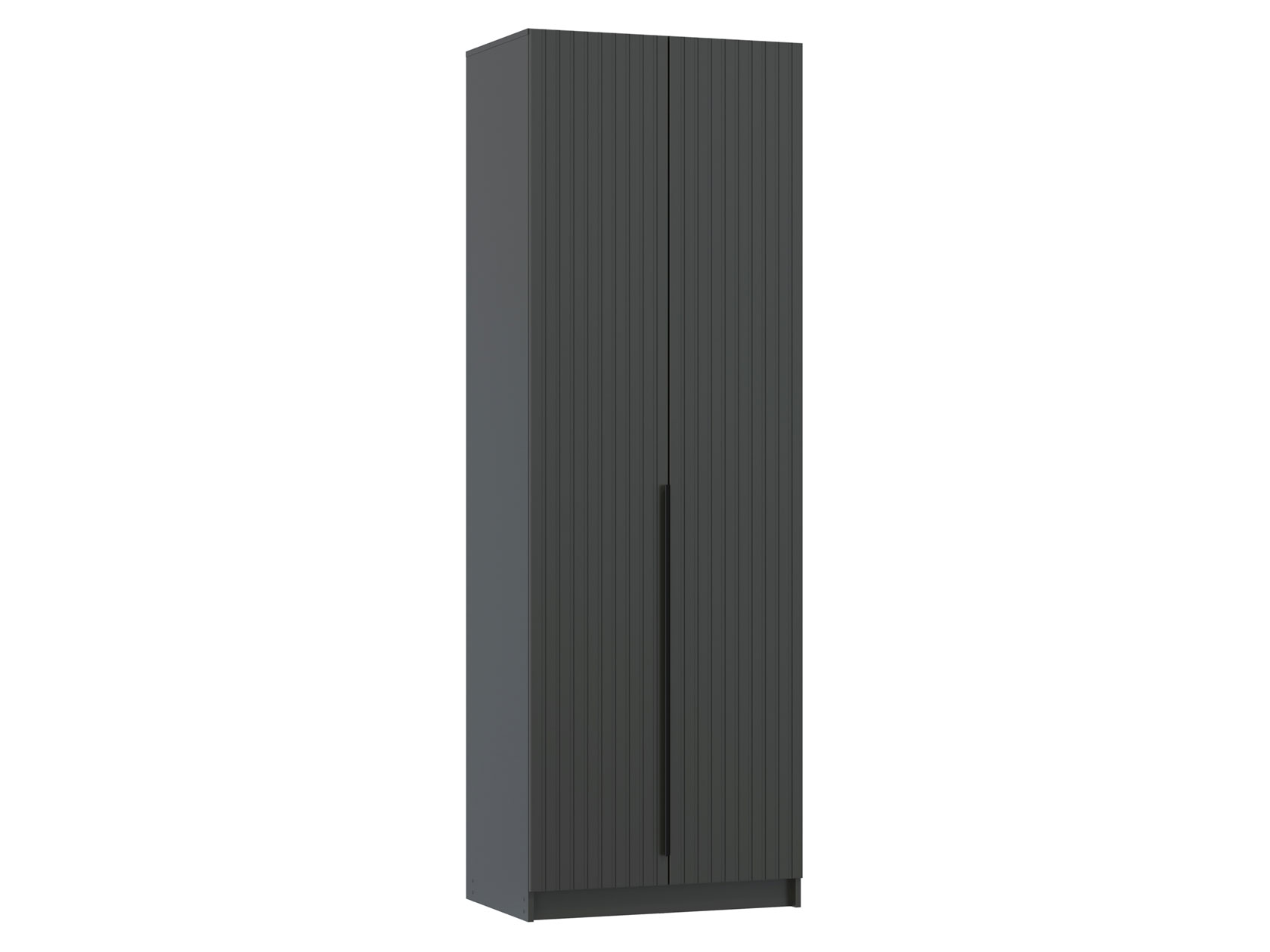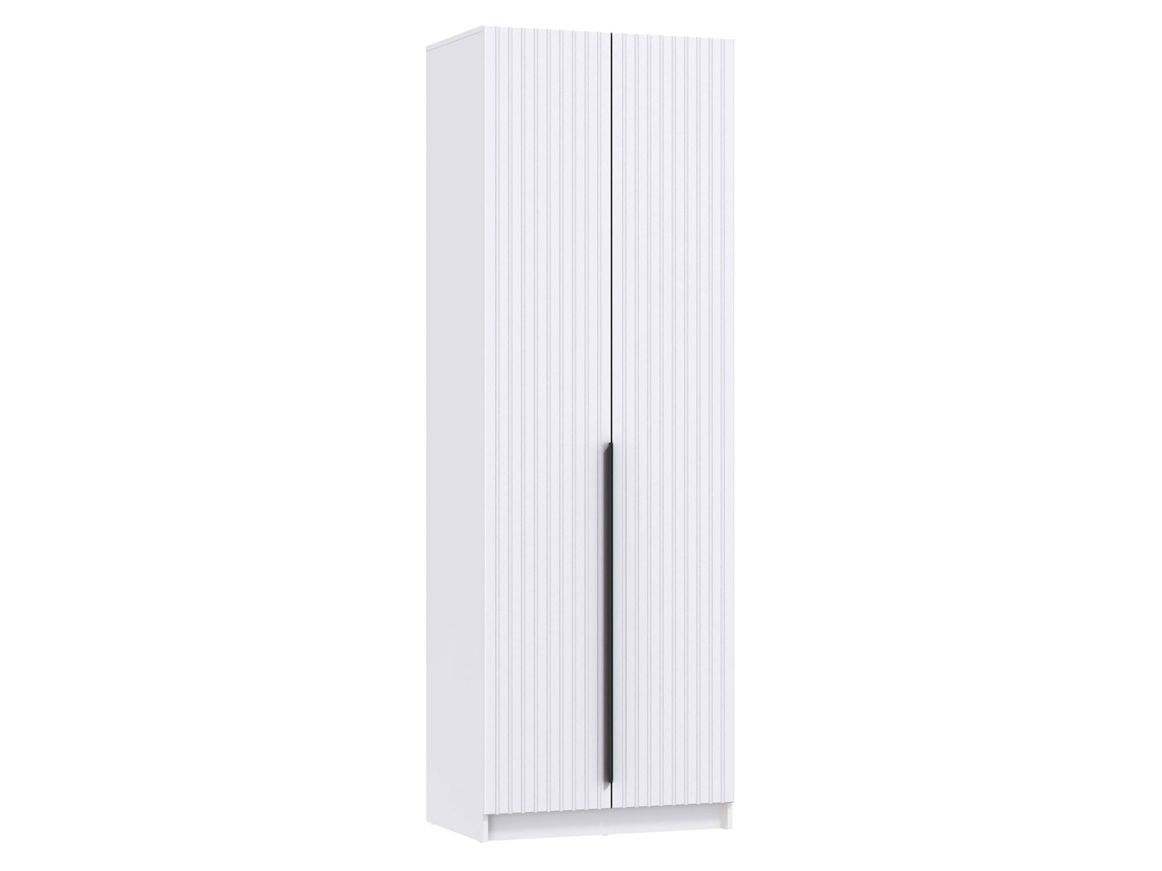 Отделение со штангой поможет удобно хранить верхнюю или повседневную одежду из деликатных тканей. Фасады дополнены объемной вертикальной фрезеровкой и лаконичными продолговатыми ручками. Такой дизайн делает акцент на строгости и четкости линий.