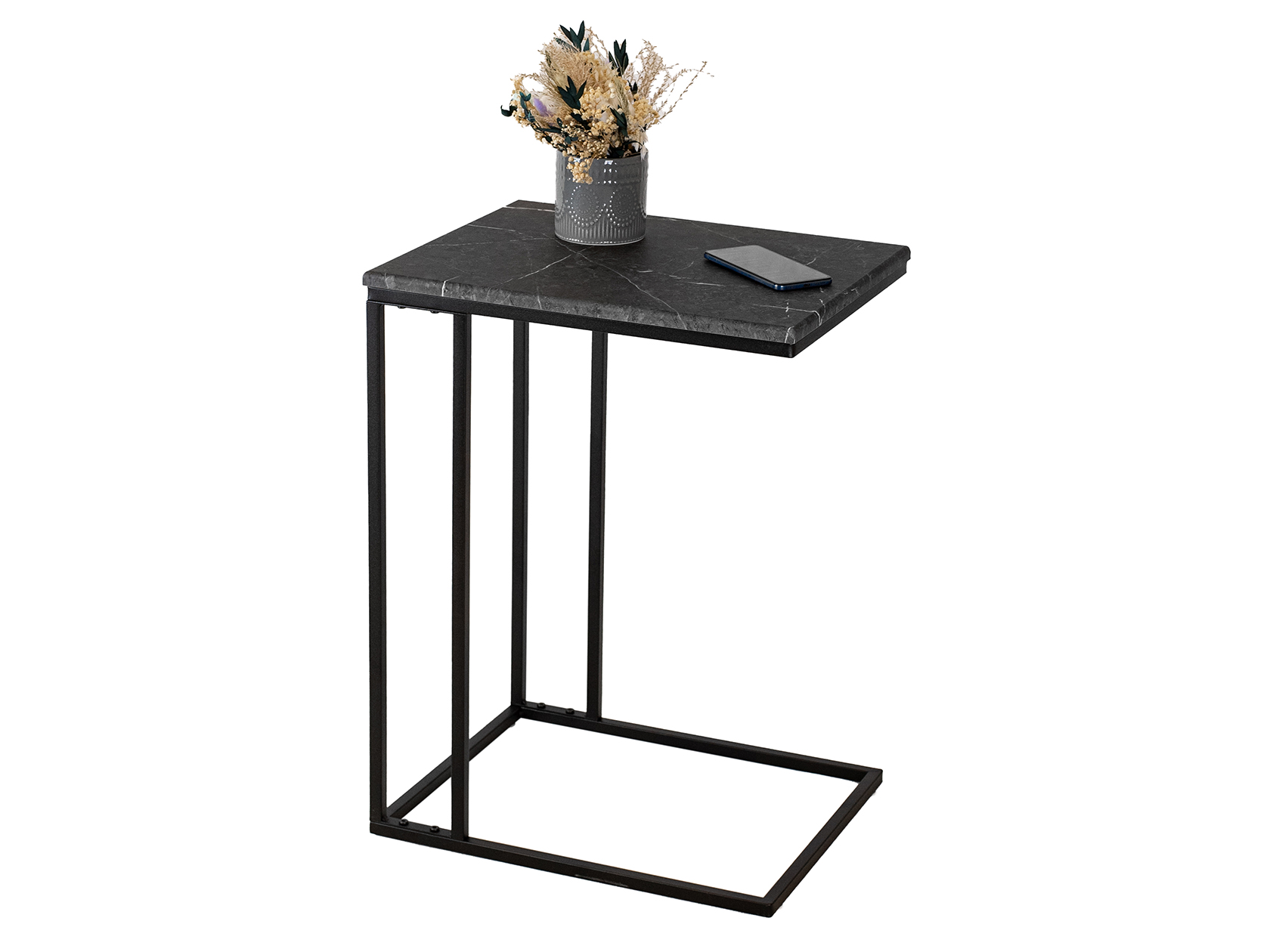 Лаконичный силуэт с эффектной поверхностью универсален как для гостиной, так и спальни. Компактные габариты и П-образная форма позволяют разместить модель близко к креслу или дивану, обеспечив комфортный доступ к напиткам, книгам и гаджетам.