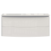 Ящики открываются легким нажатием на фасад и бесшумно закрываются без лишних усилий. Внешние края тумбы закруглены, что делает мебель комфортной даже в ограниченном пространстве. Подвесная конструкция упрощает уборку и не перегружает интерьер.