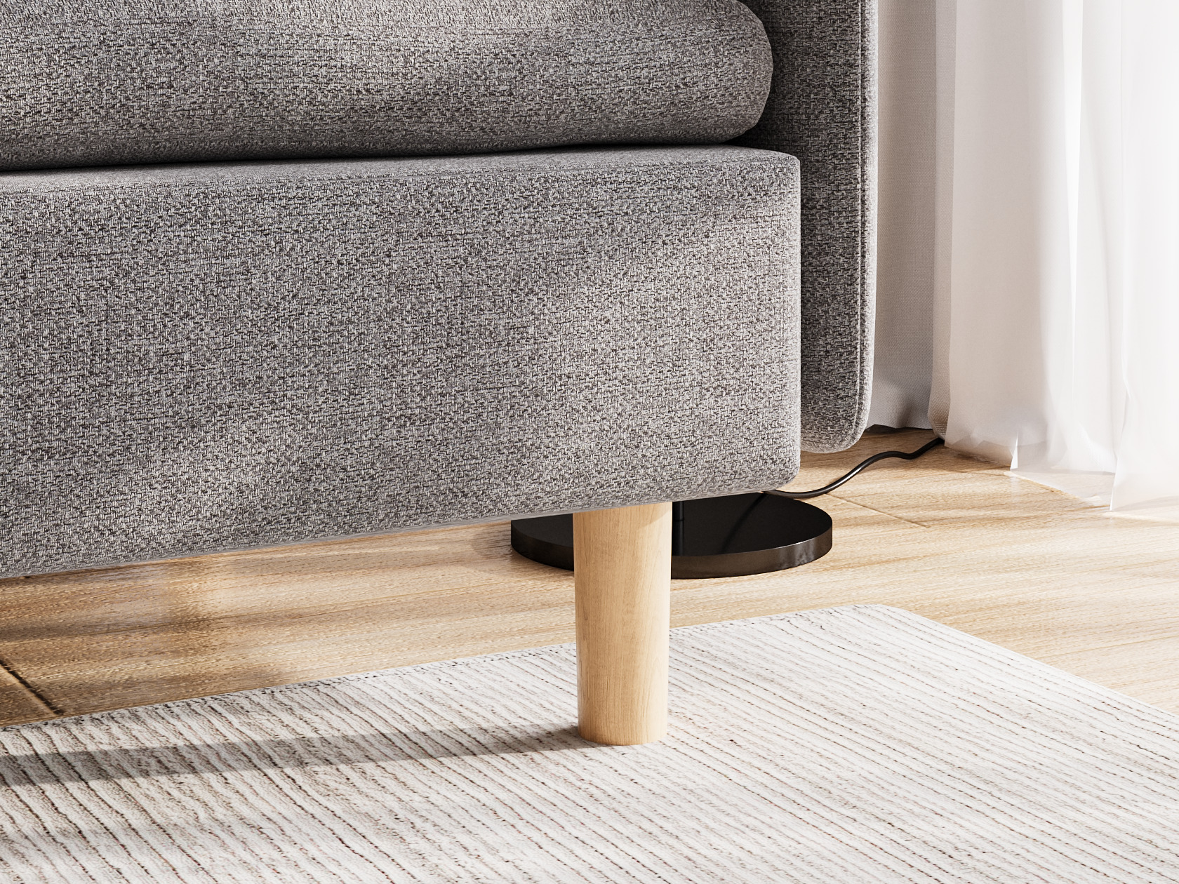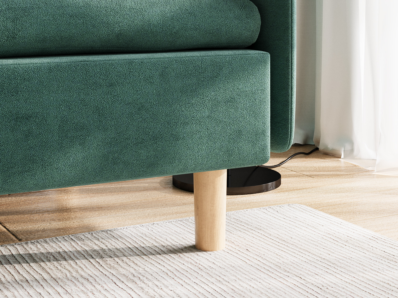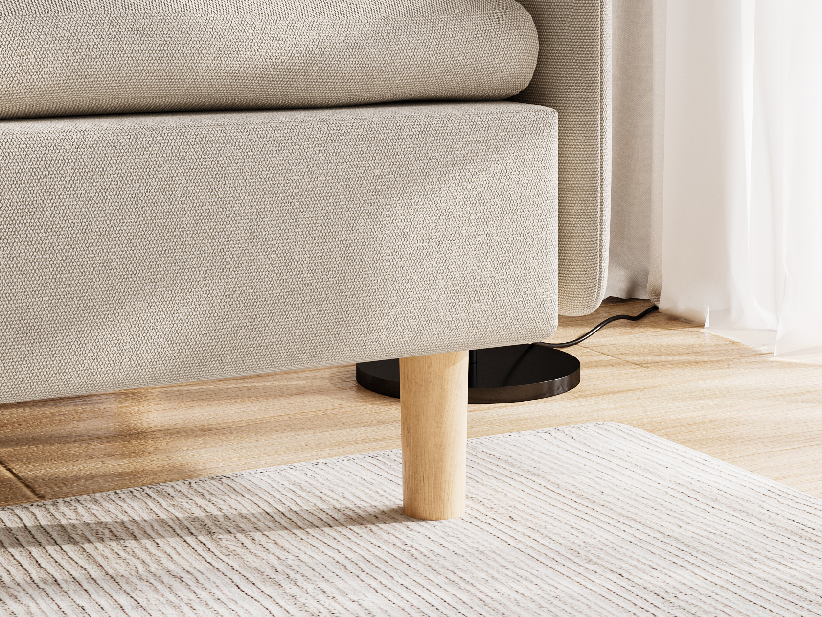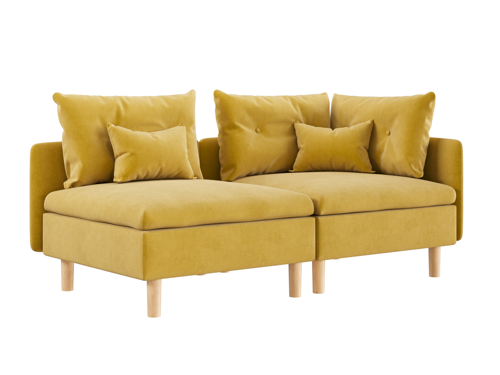 Высокие ножки, узкая спинка и подлокотник создают компактный и визуально легкий облик модели. Расположиться удобно позволяют мягкие подушки и глубокое сиденье. Кушетку можно использовать для зонирования пространства, а также она отлично комбинируется с другой мягкой мебелью из коллекции.