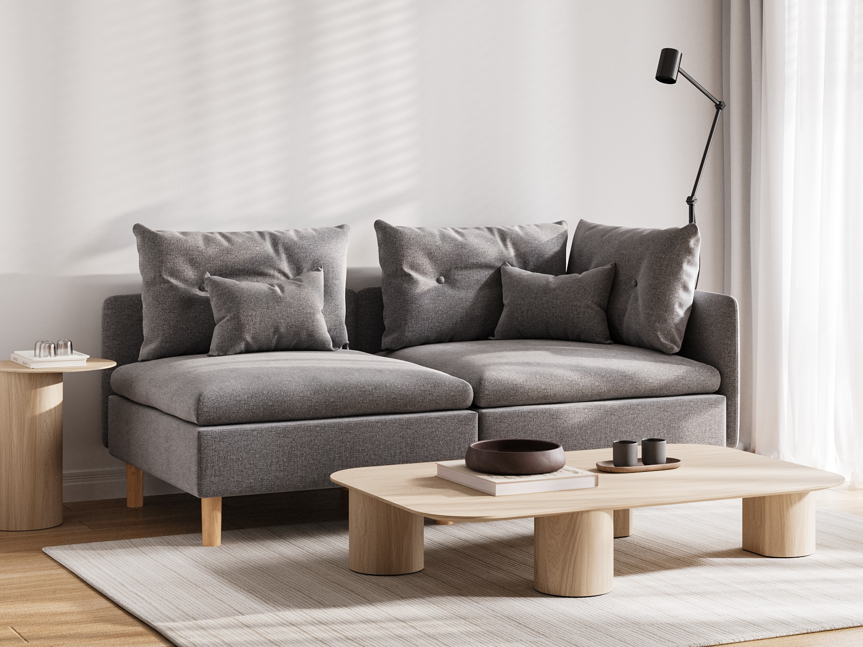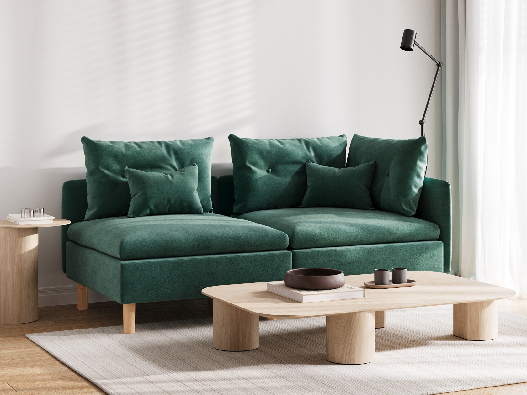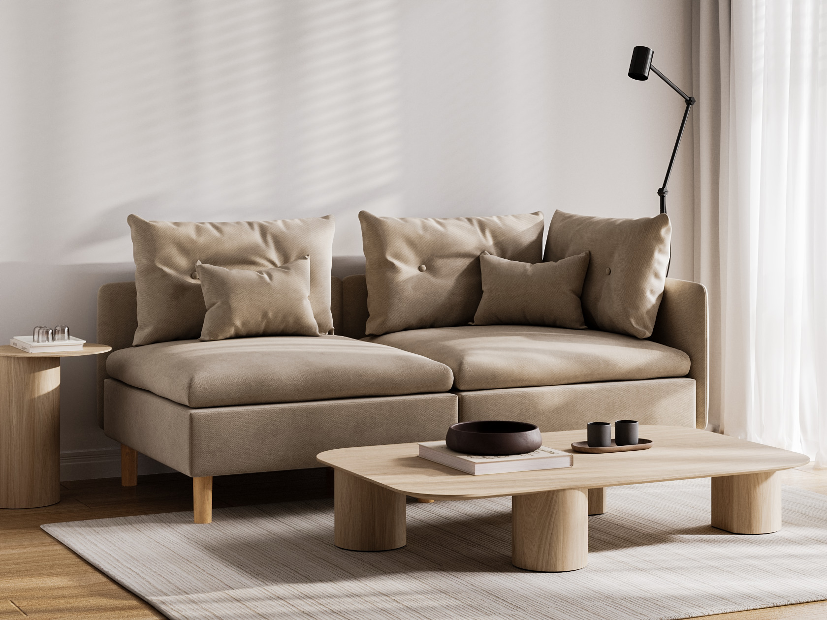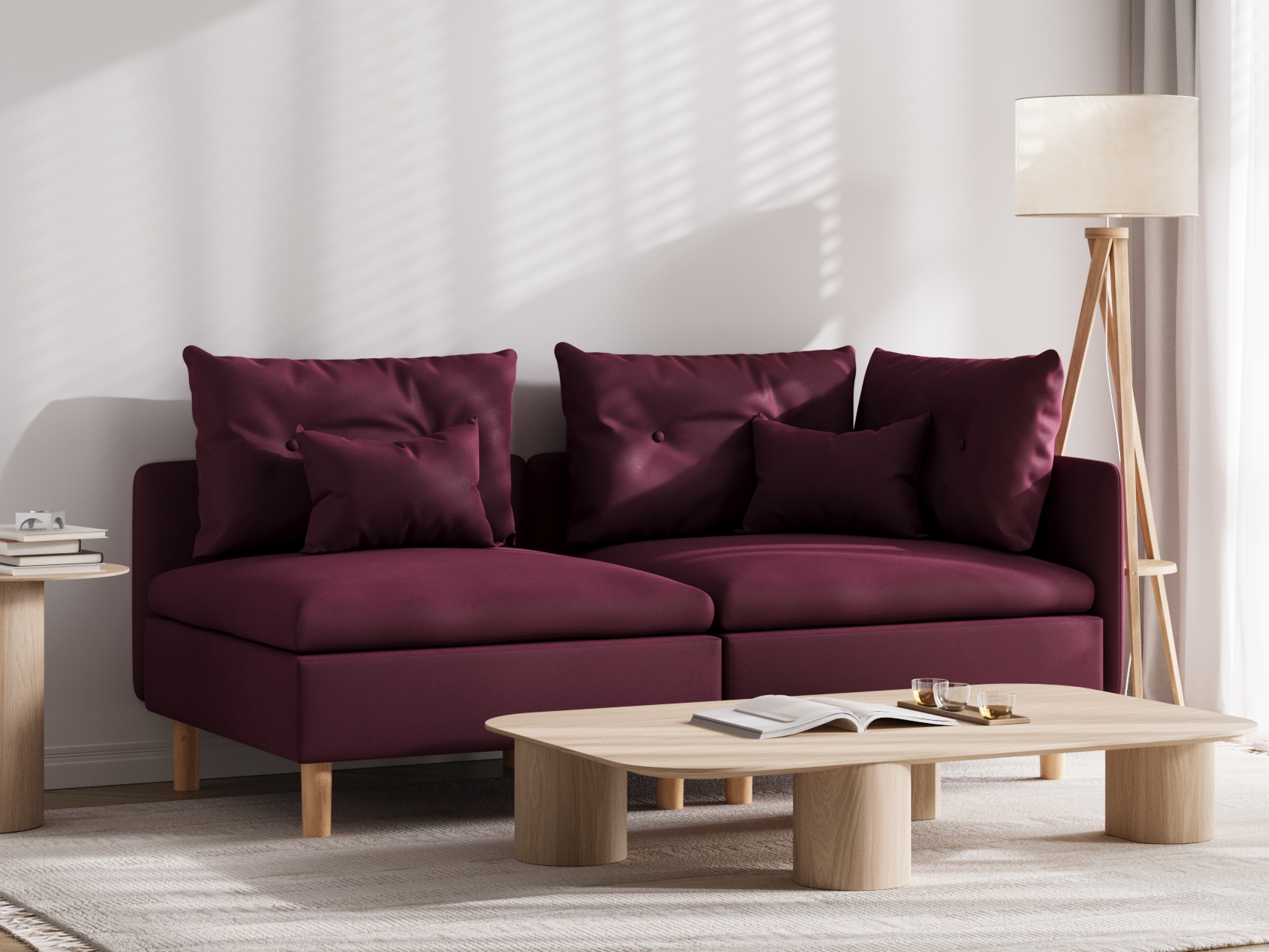 Высокие ножки, узкая спинка и подлокотник создают компактный и визуально легкий облик модели. Расположиться удобно позволяют мягкие подушки и глубокое сиденье. Кушетку можно использовать для зонирования пространства, а также она отлично комбинируется с другой мягкой мебелью из коллекции.