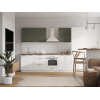 Расположение элементов позволяет удобно разместить посуду, продукты и различную утварь. Для комфортной эксплуатации выдвижные ящики укомплектованы качественными направляющими, а откидные дверцы антресольных шкафов легко фиксируются с помощью газлифта.
