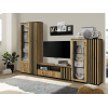 Продуманное наполнение поможет удобно разместить технику, одежду, аксессуары, а также посуду и памятные сувениры. Шкафы-витрины добавят пространству визуальной легкости и защитят содержимое от пыли. Декоративные реечные фасады дополняют текстуру дерева, придавая мебели актуальный вид.