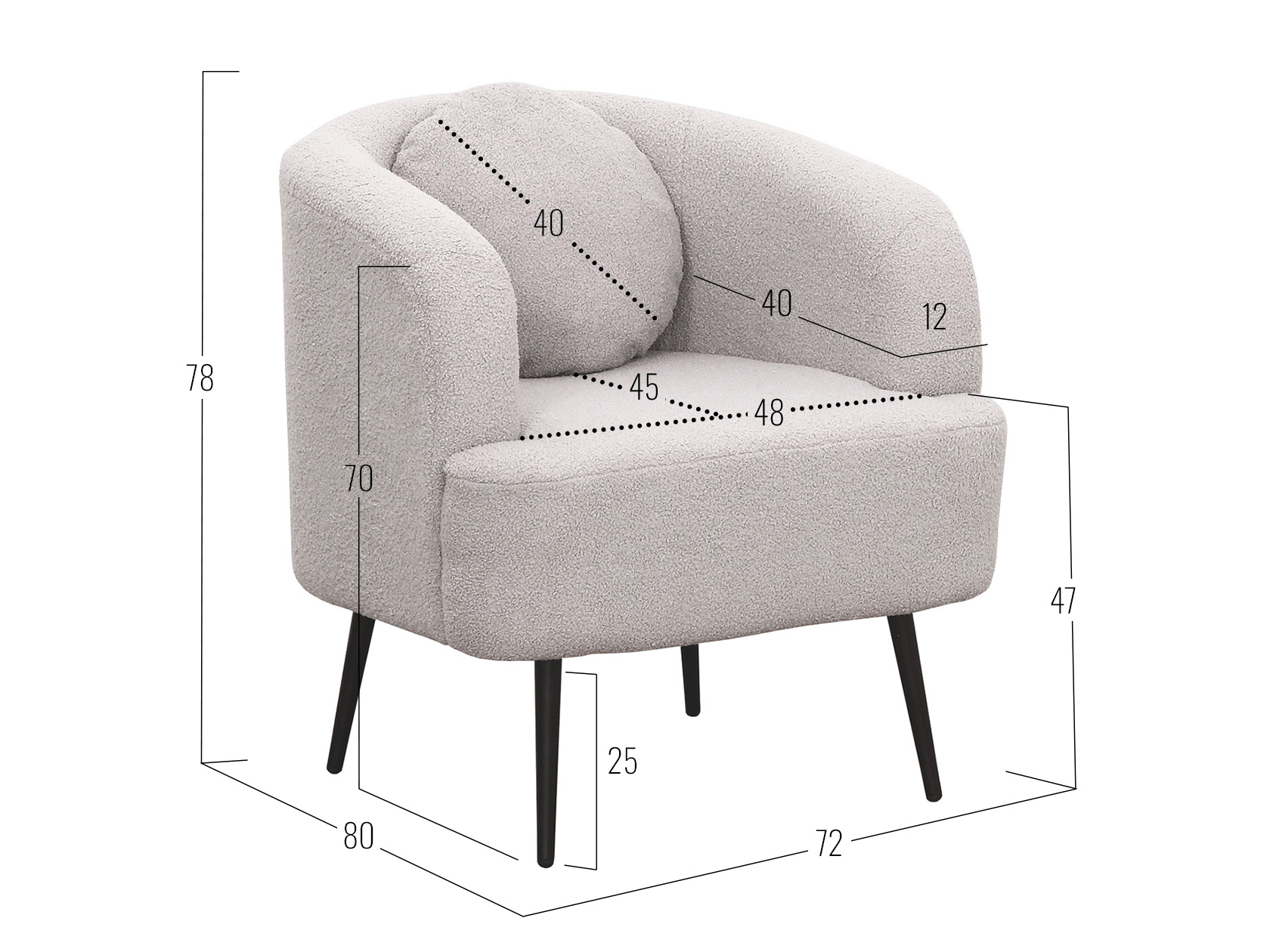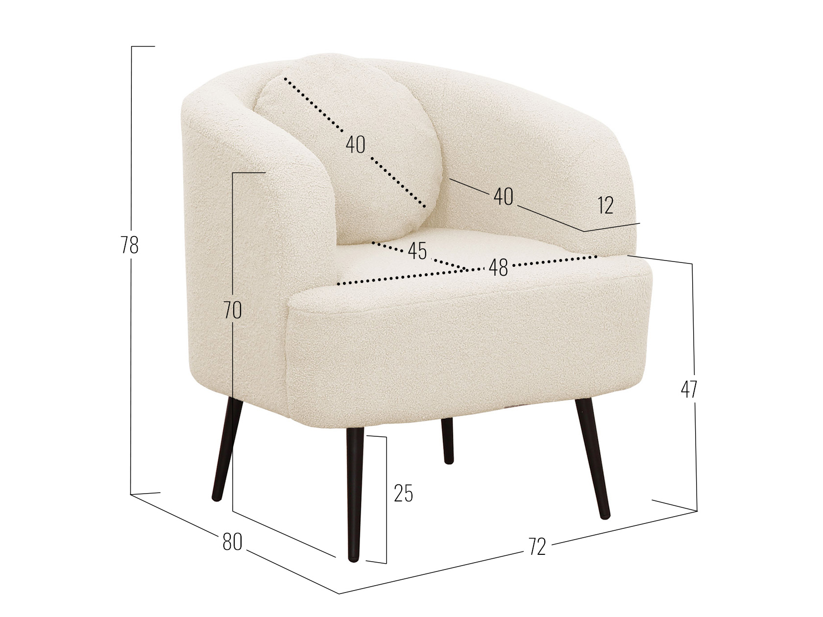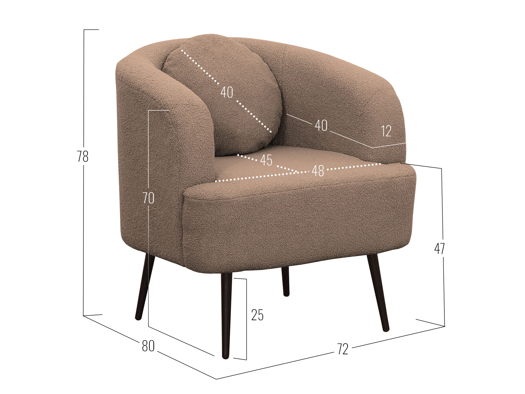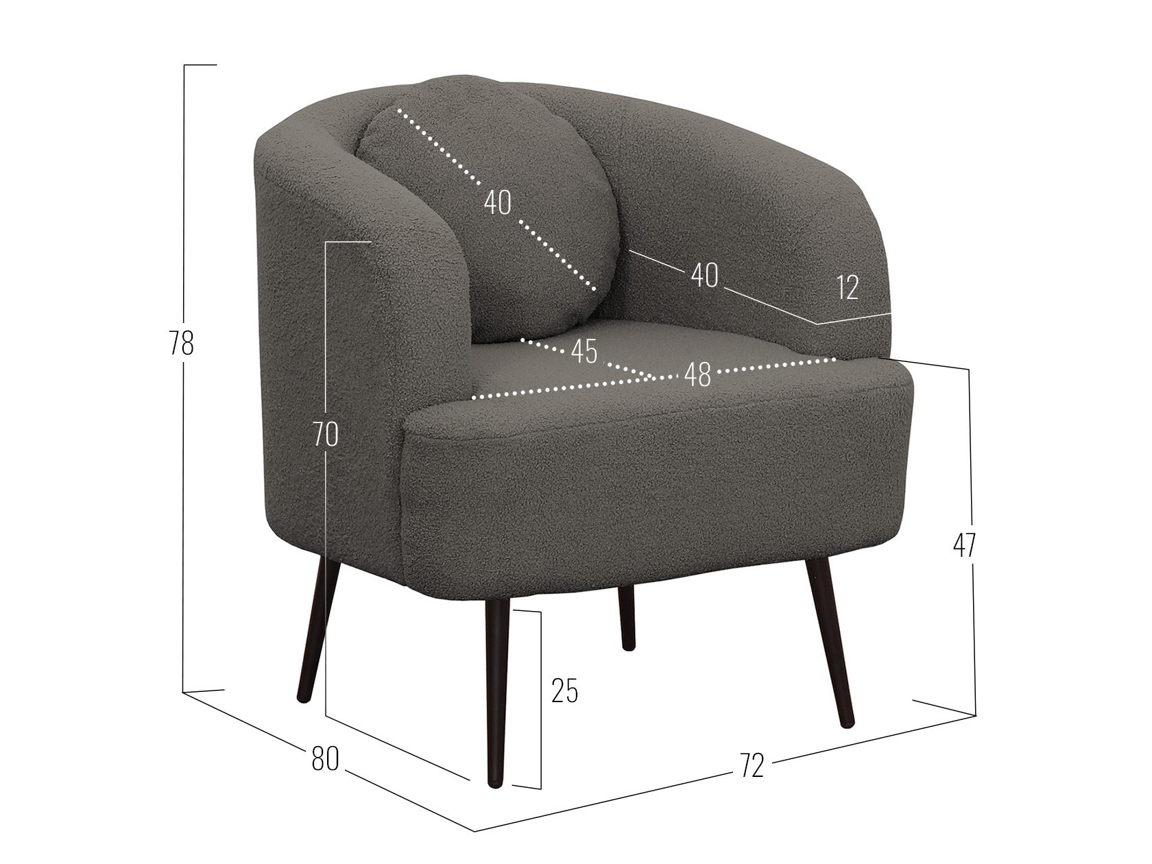 Посадочное место без подушек (ШхГ): 48 х 64 см.