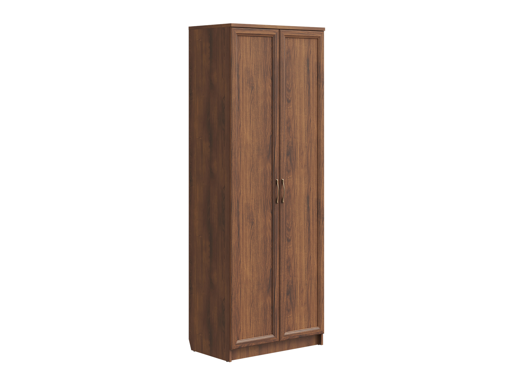 Внутри модель оснащена штангой для вешалок и полками для удобного хранения белья и других предметов гардероба. Рамочные фасады и текстура дерева помогают создать уютную атмосферу в комнате.