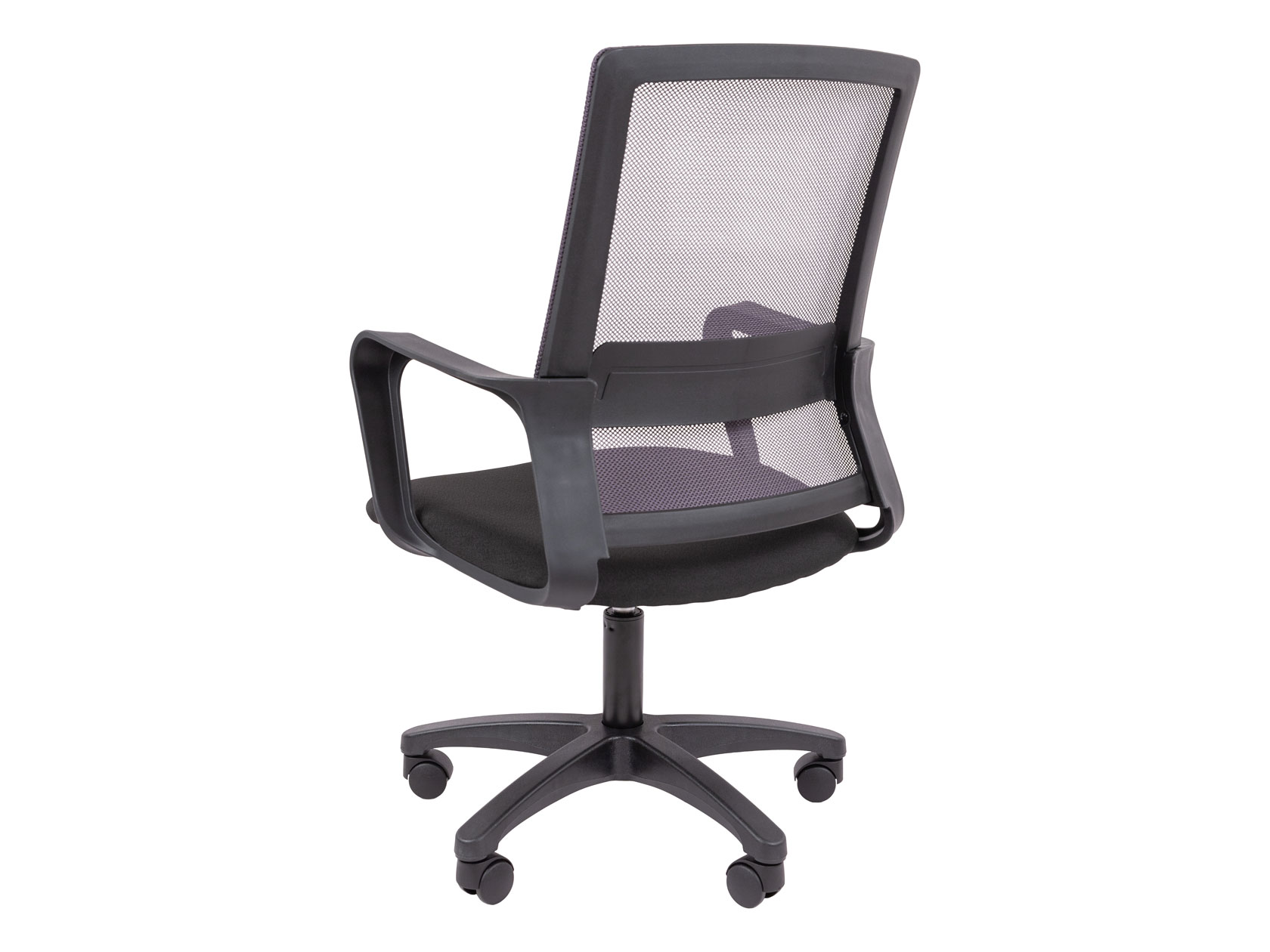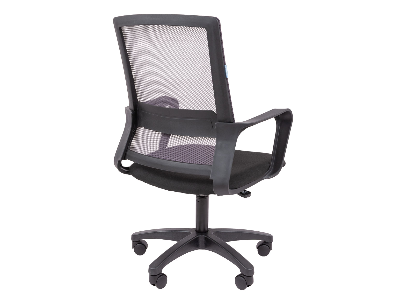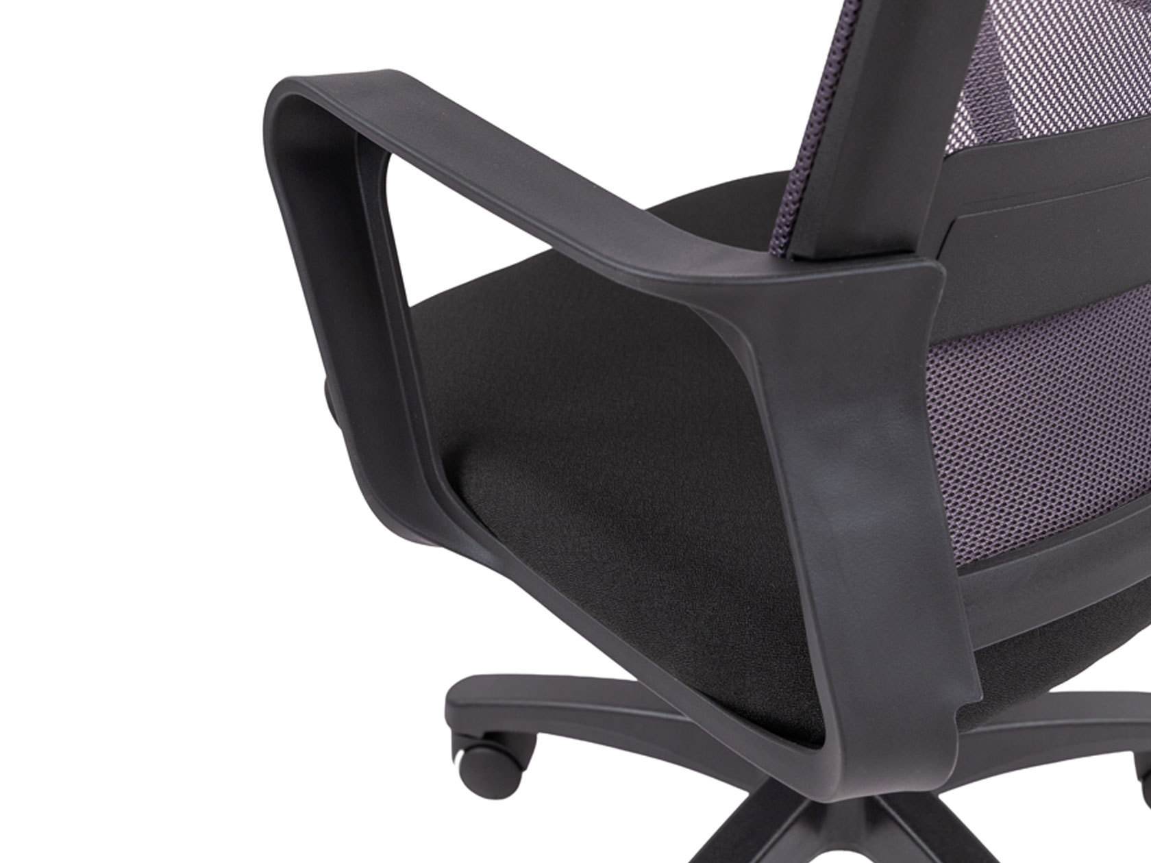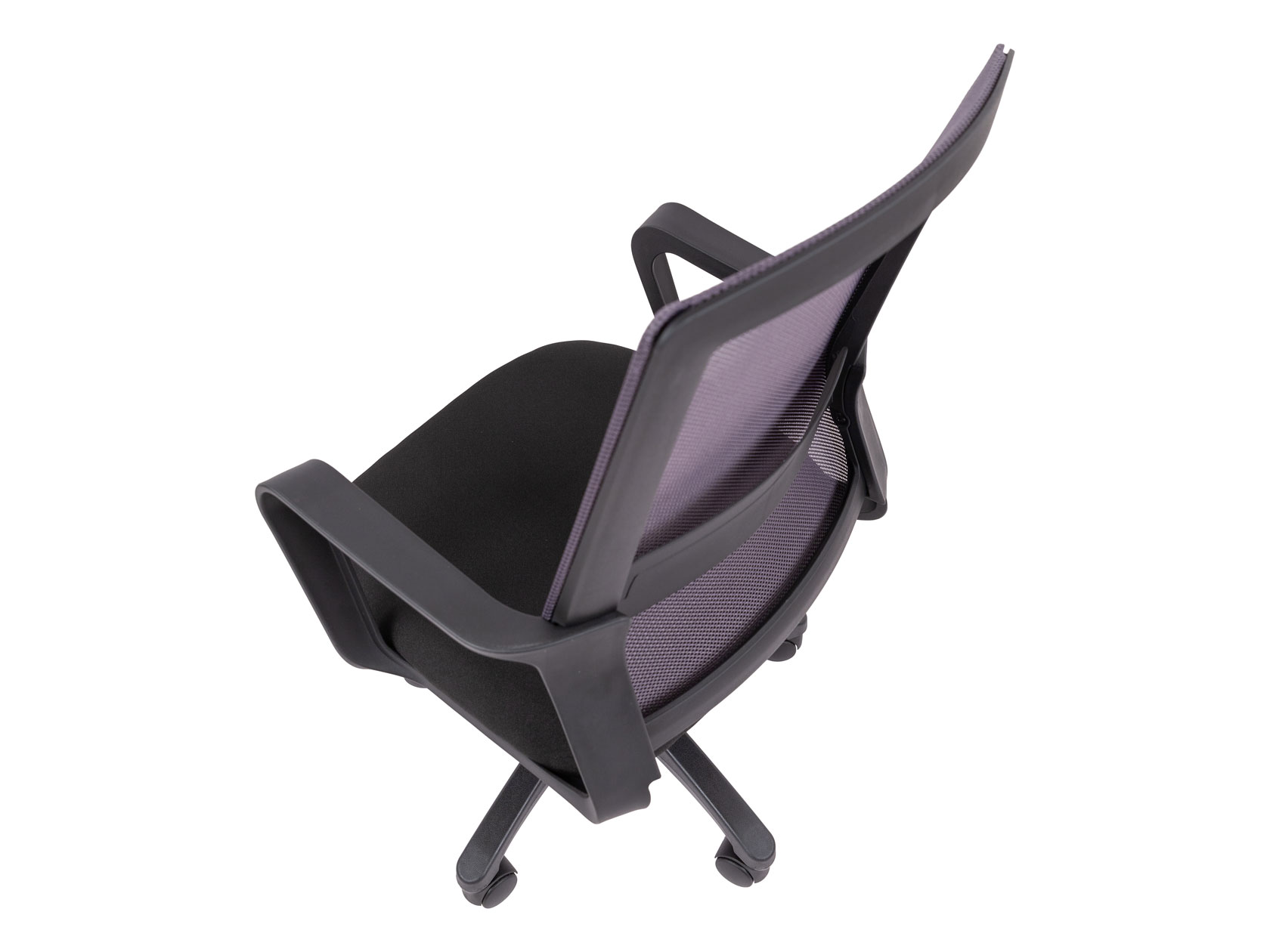 Дышащая сетчатая спинка обеспечивает циркуляцию воздуха и создает комфорт даже в жаркие дни. Газлифт позволяет настроить высоту сиденья под индивидуальные предпочтения. Маневренные колеса легко перемещают конструкцию по комнате.