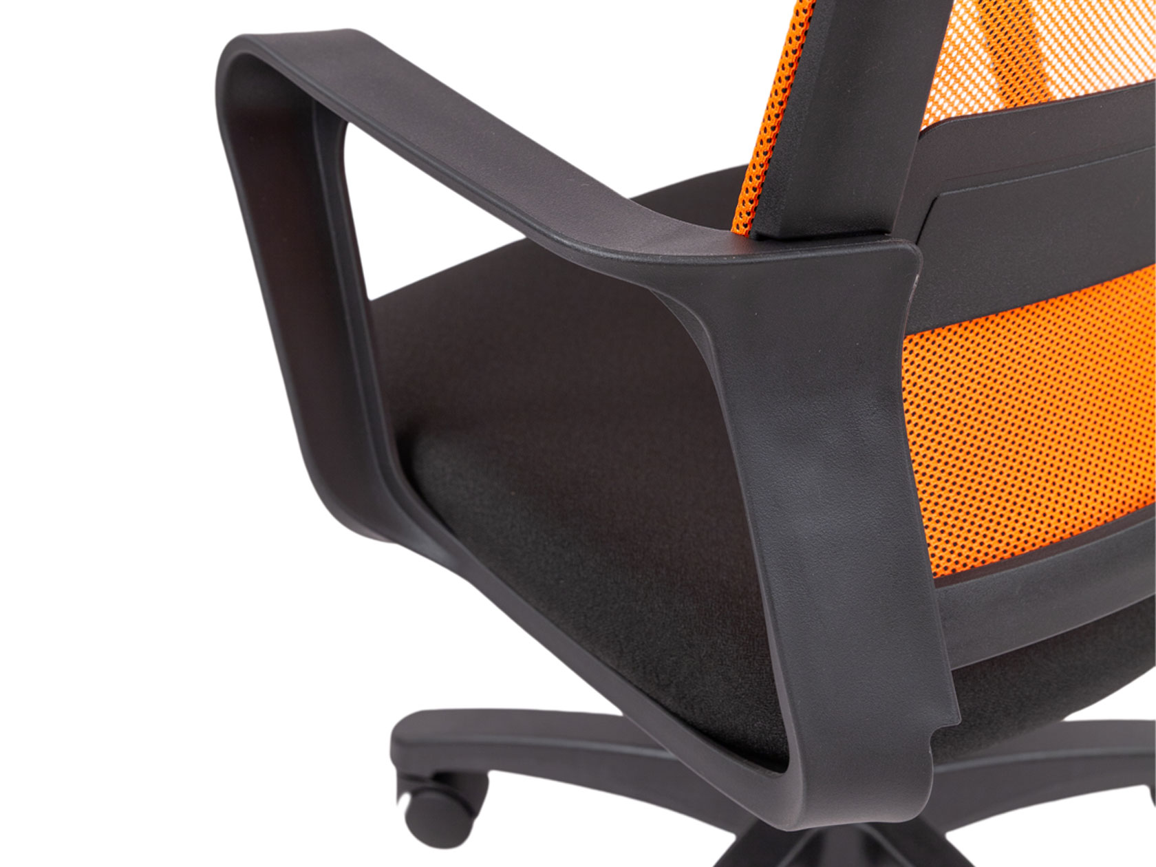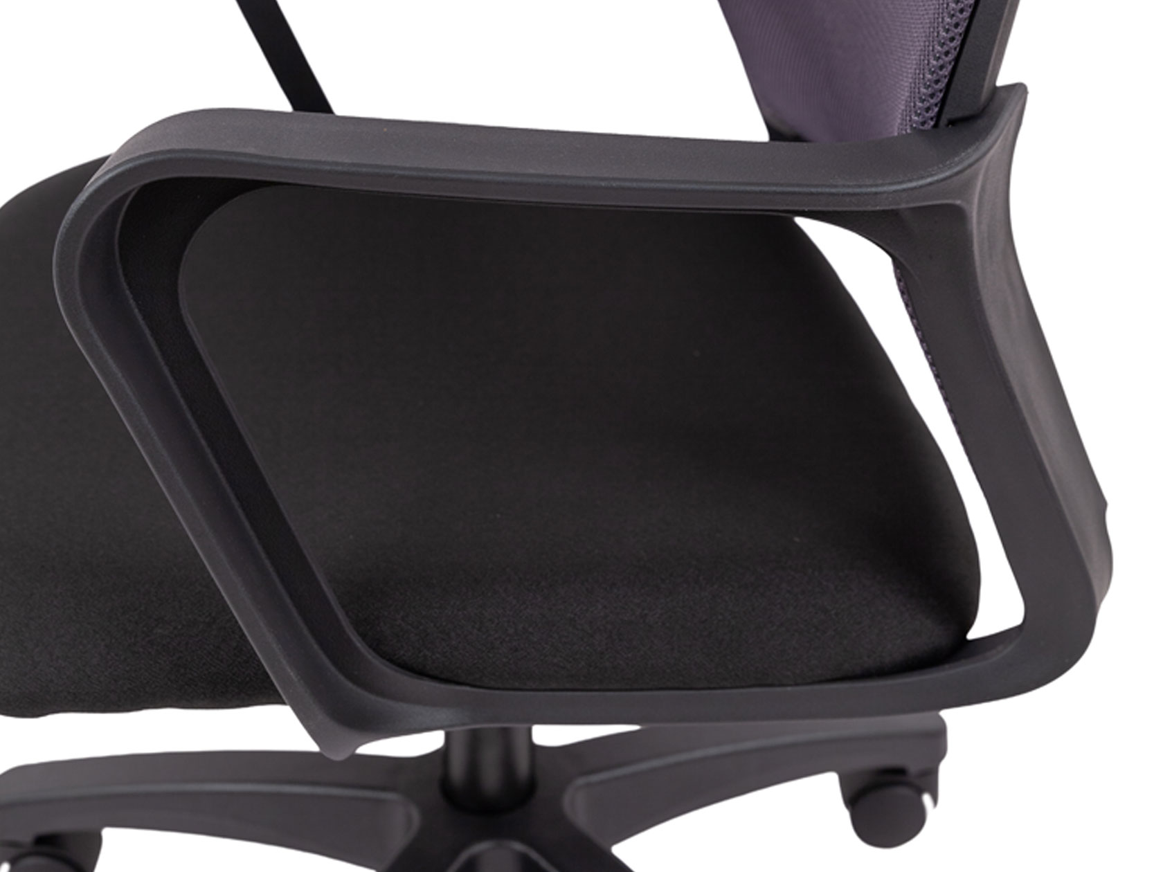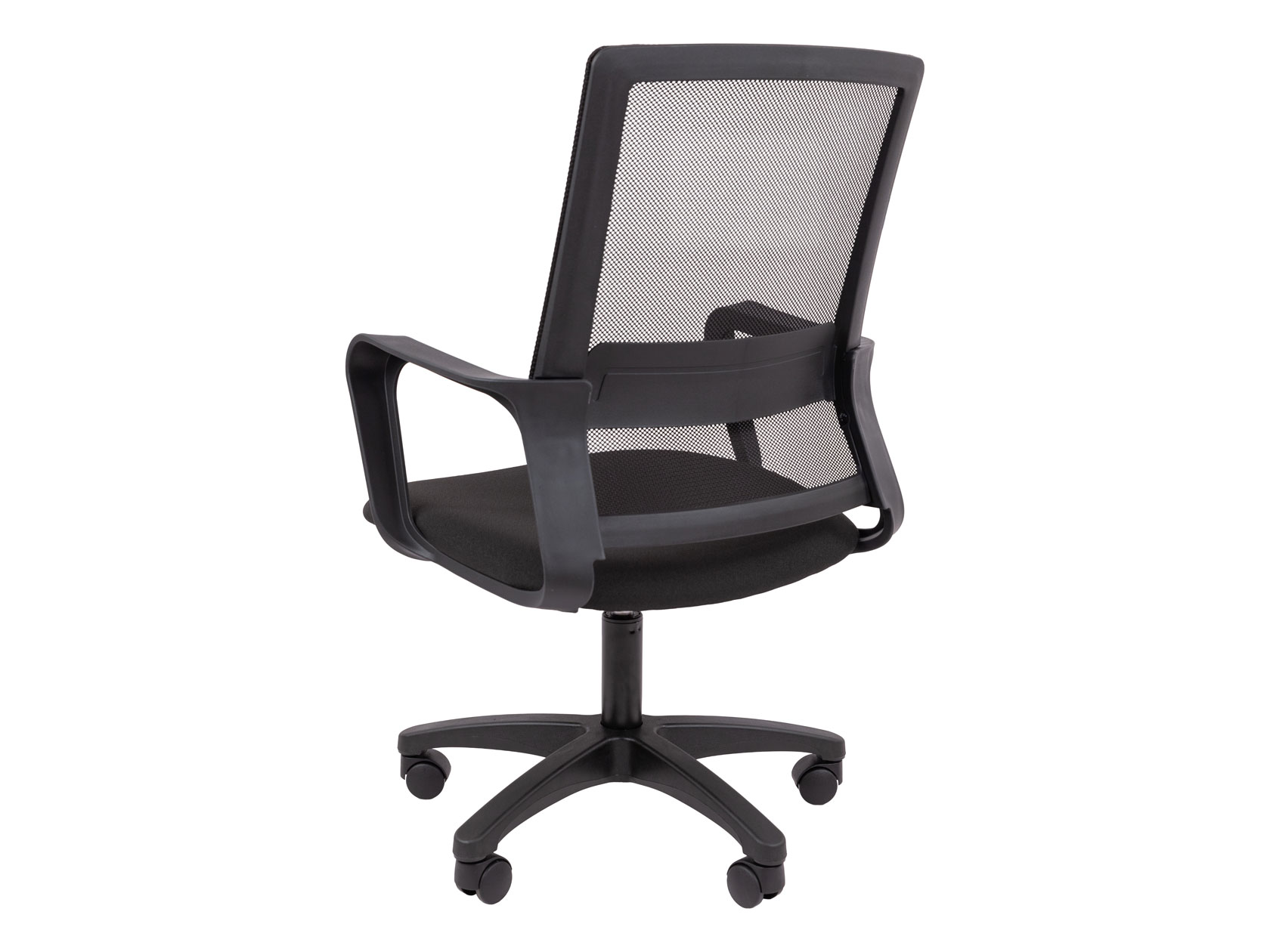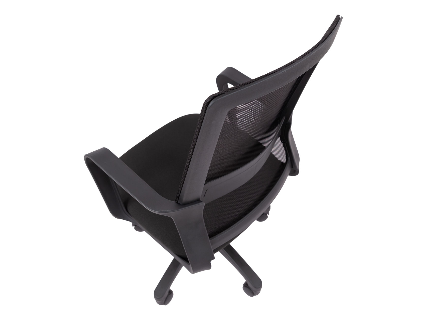 Дышащая сетчатая спинка обеспечивает циркуляцию воздуха и создает комфорт даже в жаркие дни. Газлифт позволяет настроить высоту сиденья под индивидуальные предпочтения. Маневренные колеса легко перемещают конструкцию по комнате.