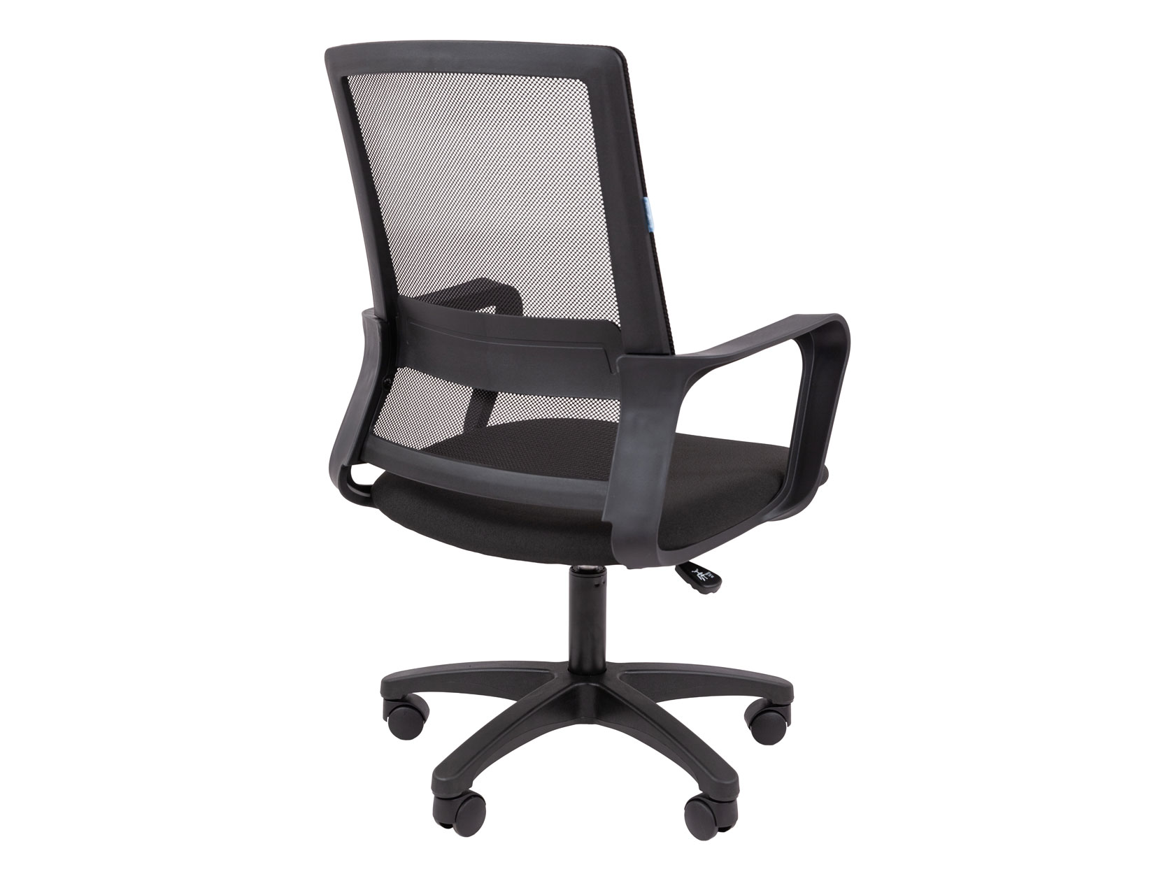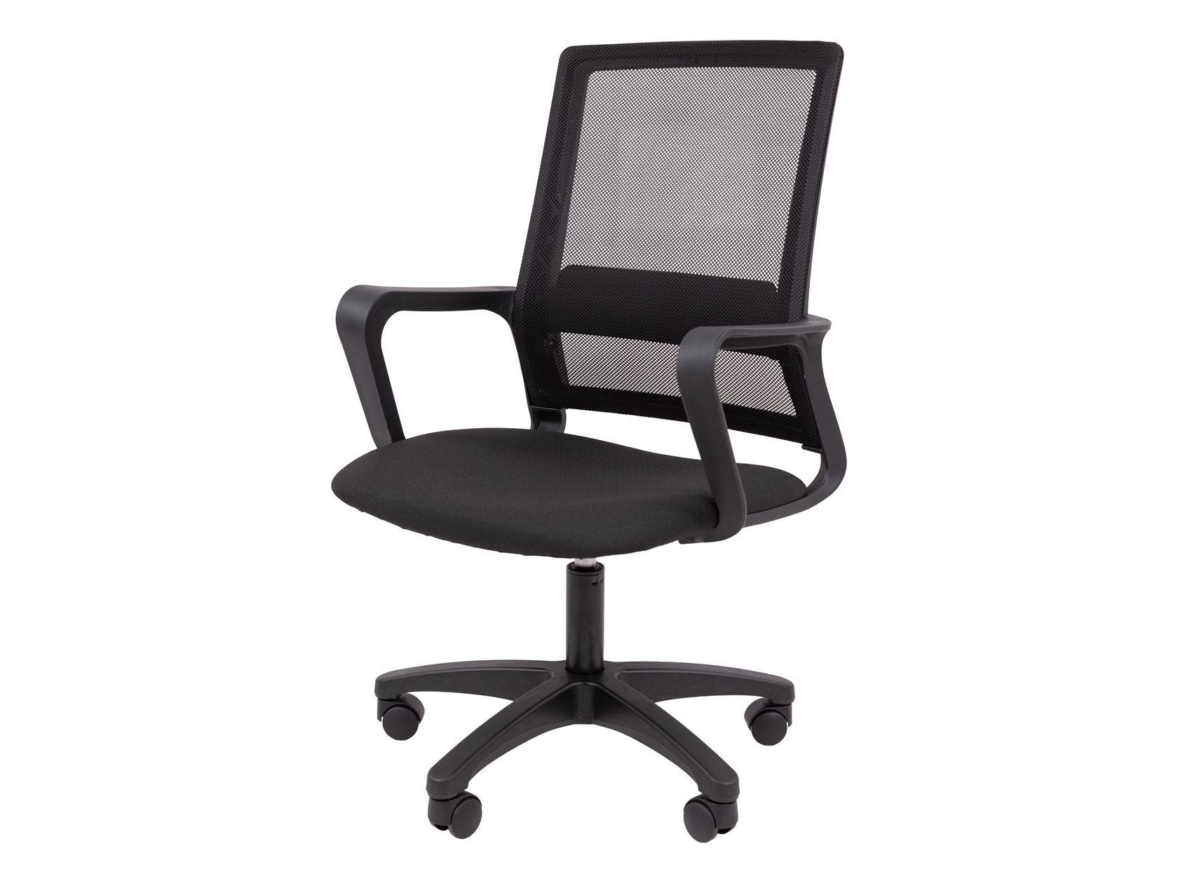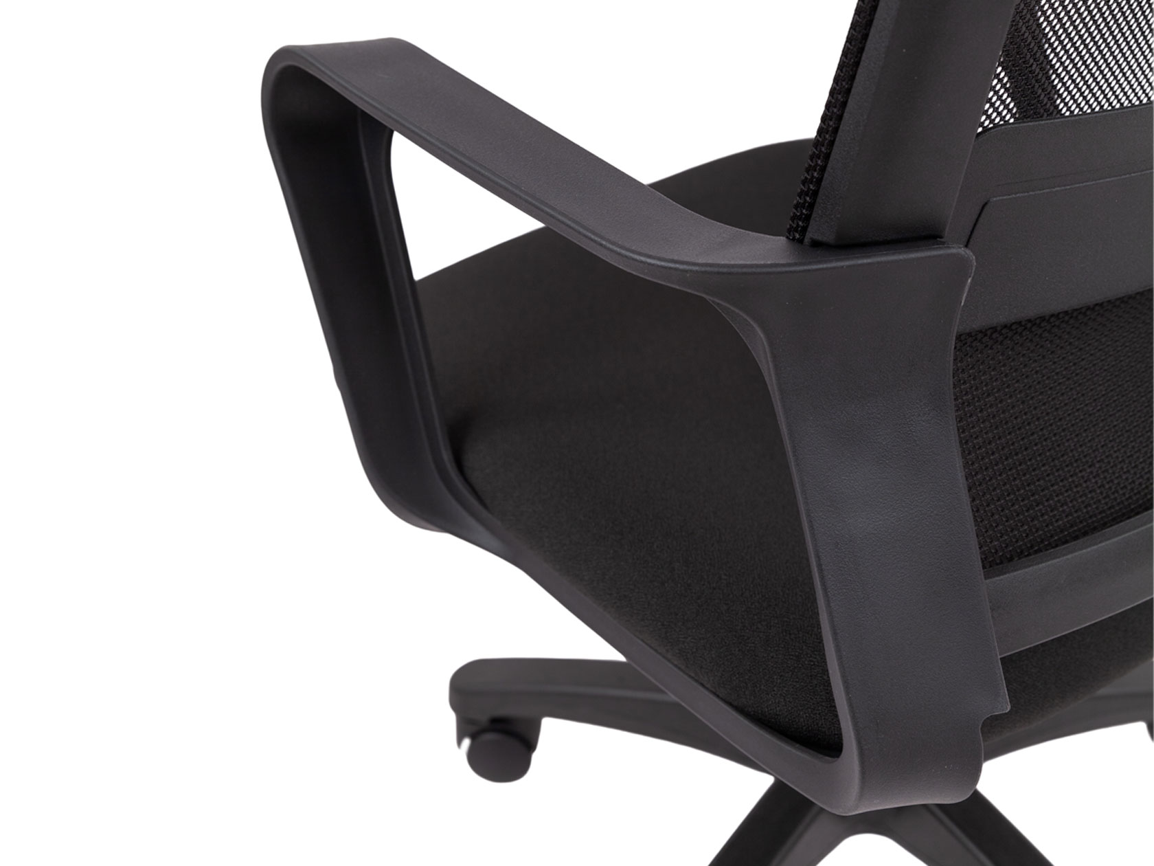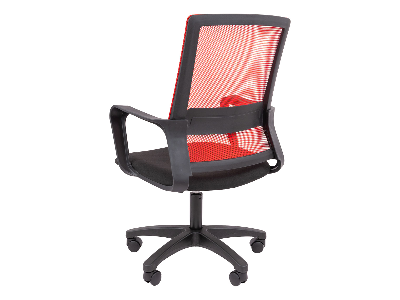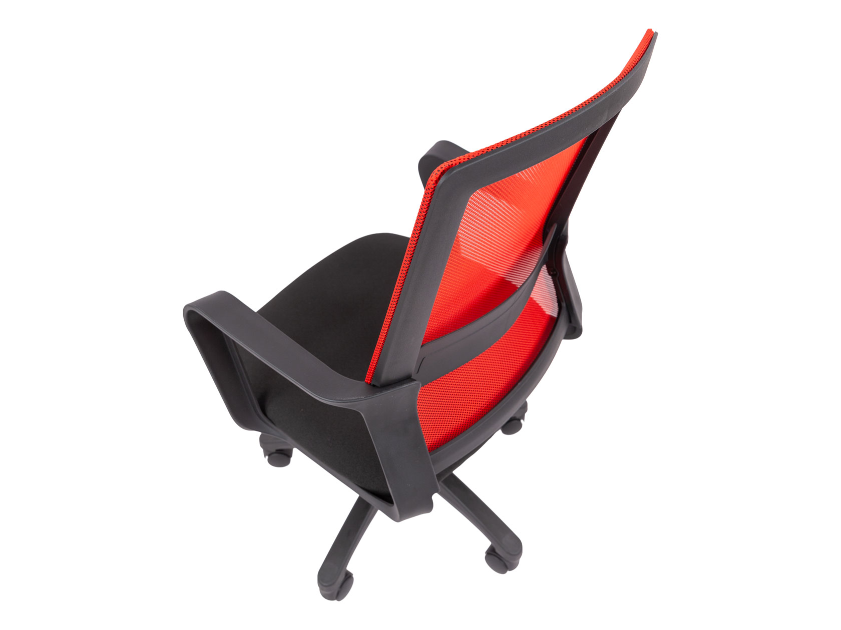 Дышащая сетчатая спинка обеспечивает циркуляцию воздуха и создает комфорт даже в жаркие дни. Газлифт позволяет настроить высоту сиденья под индивидуальные предпочтения. Маневренные колеса легко перемещают конструкцию по комнате.