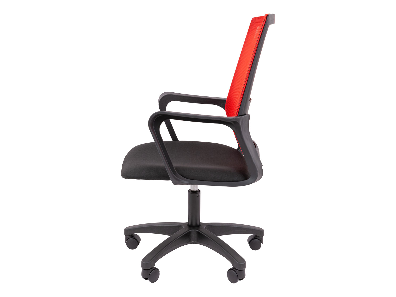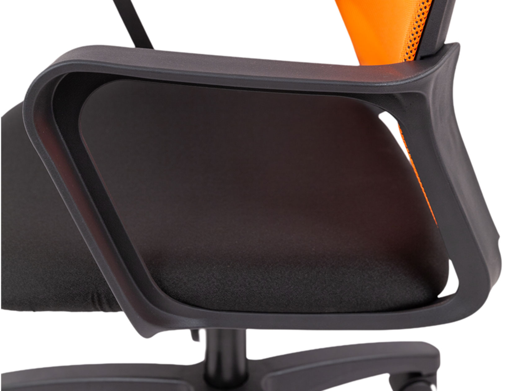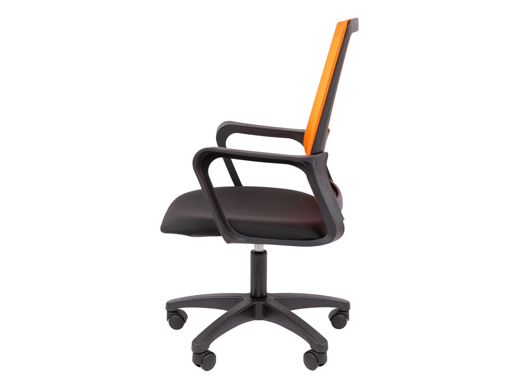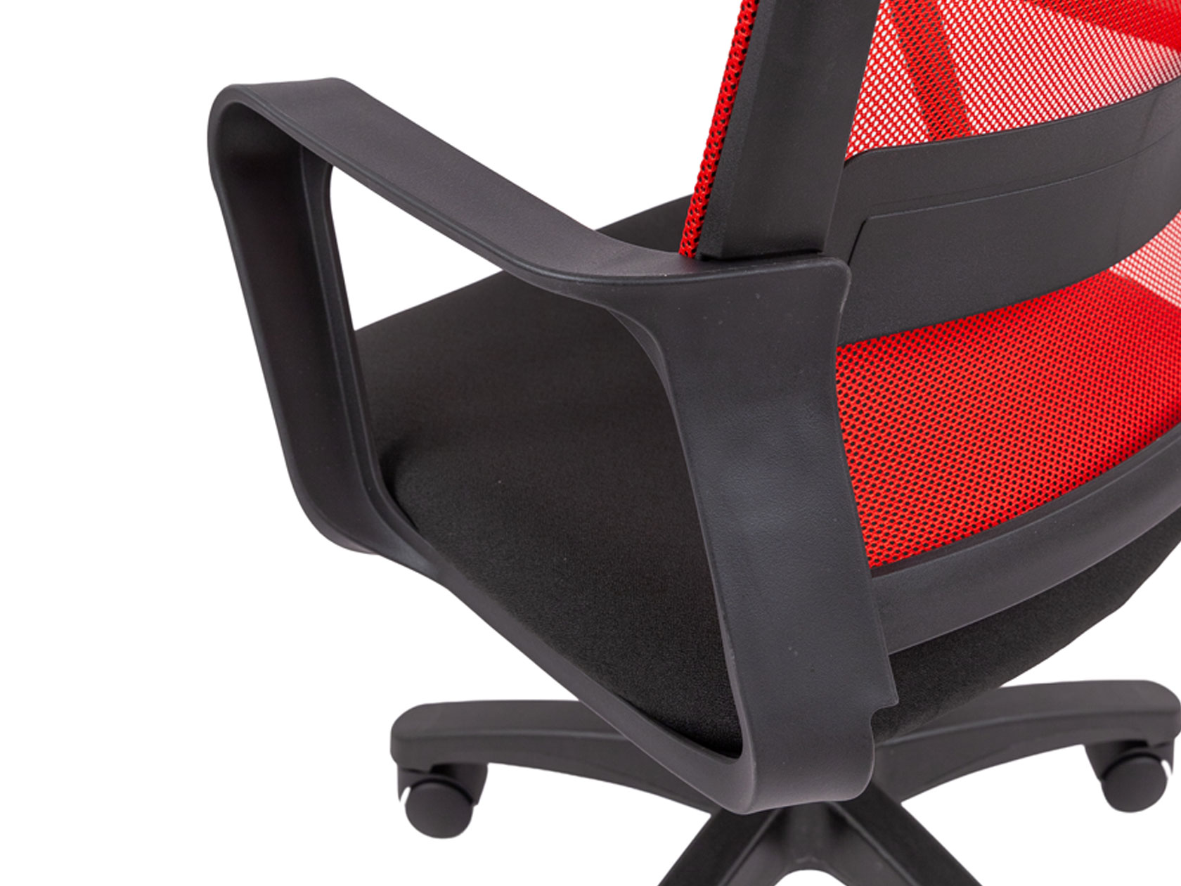 Дышащая сетчатая спинка обеспечивает циркуляцию воздуха и создает комфорт даже в жаркие дни. Газлифт позволяет настроить высоту сиденья под индивидуальные предпочтения. Маневренные колеса легко перемещают конструкцию по комнате.