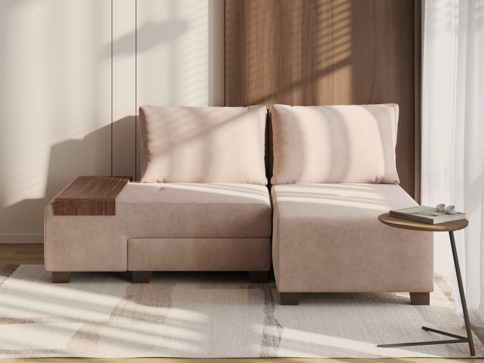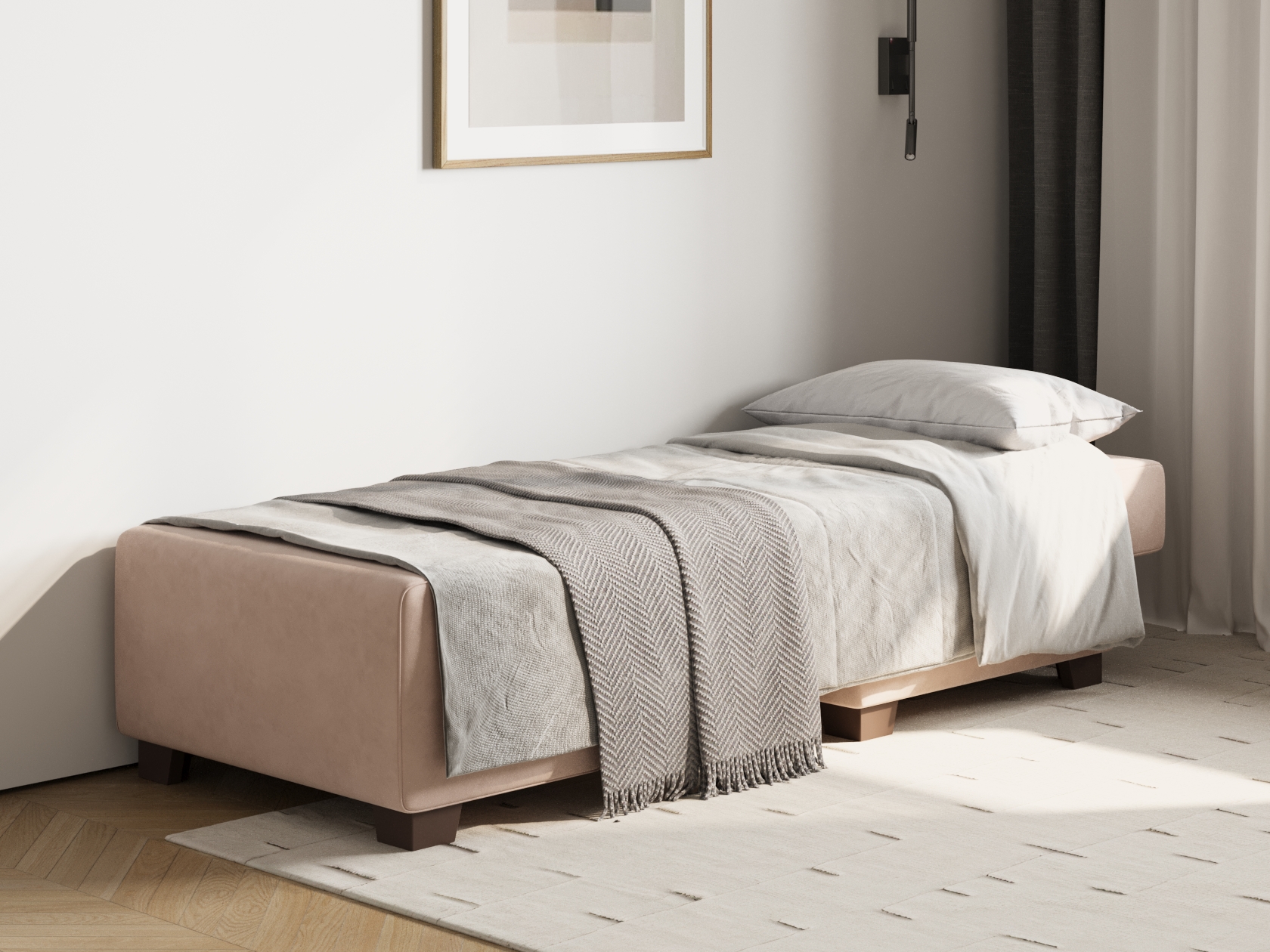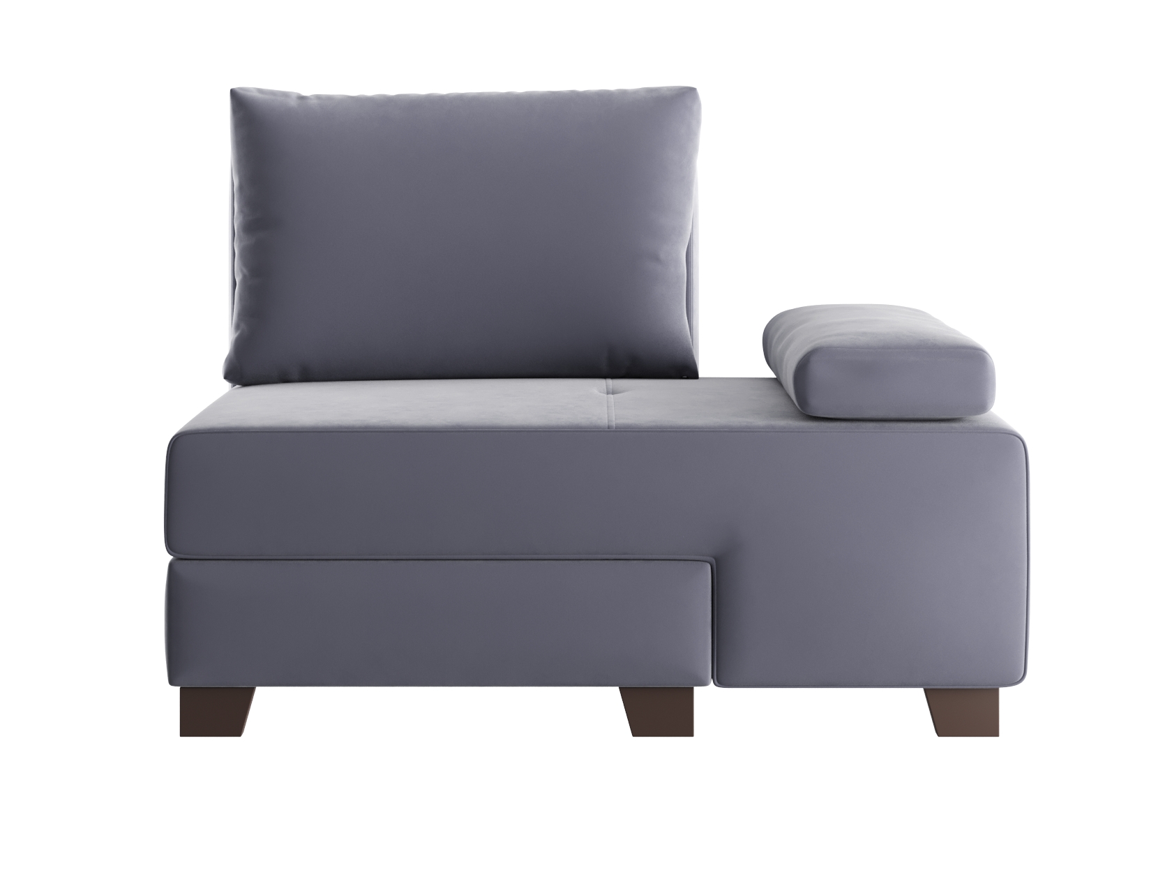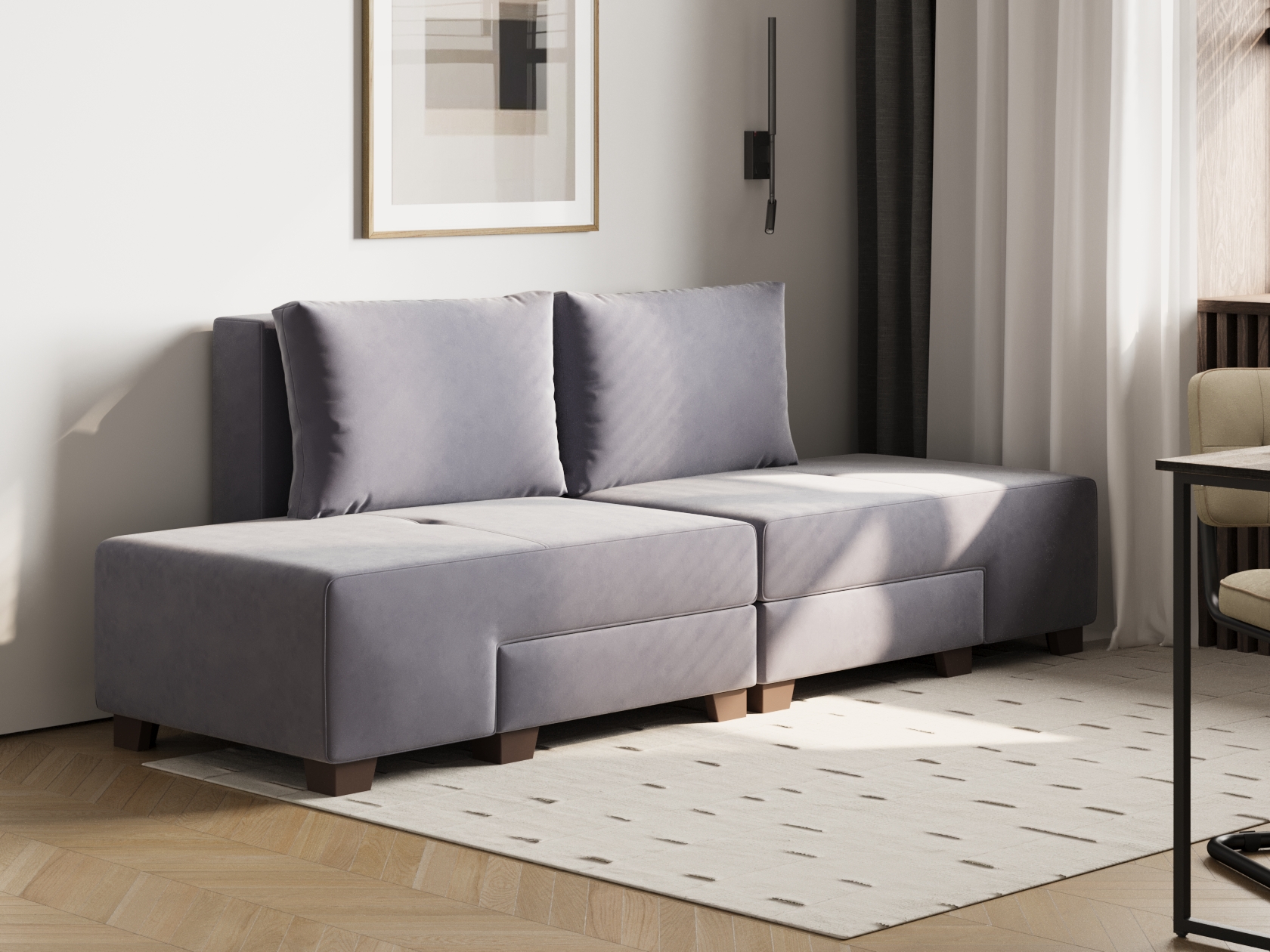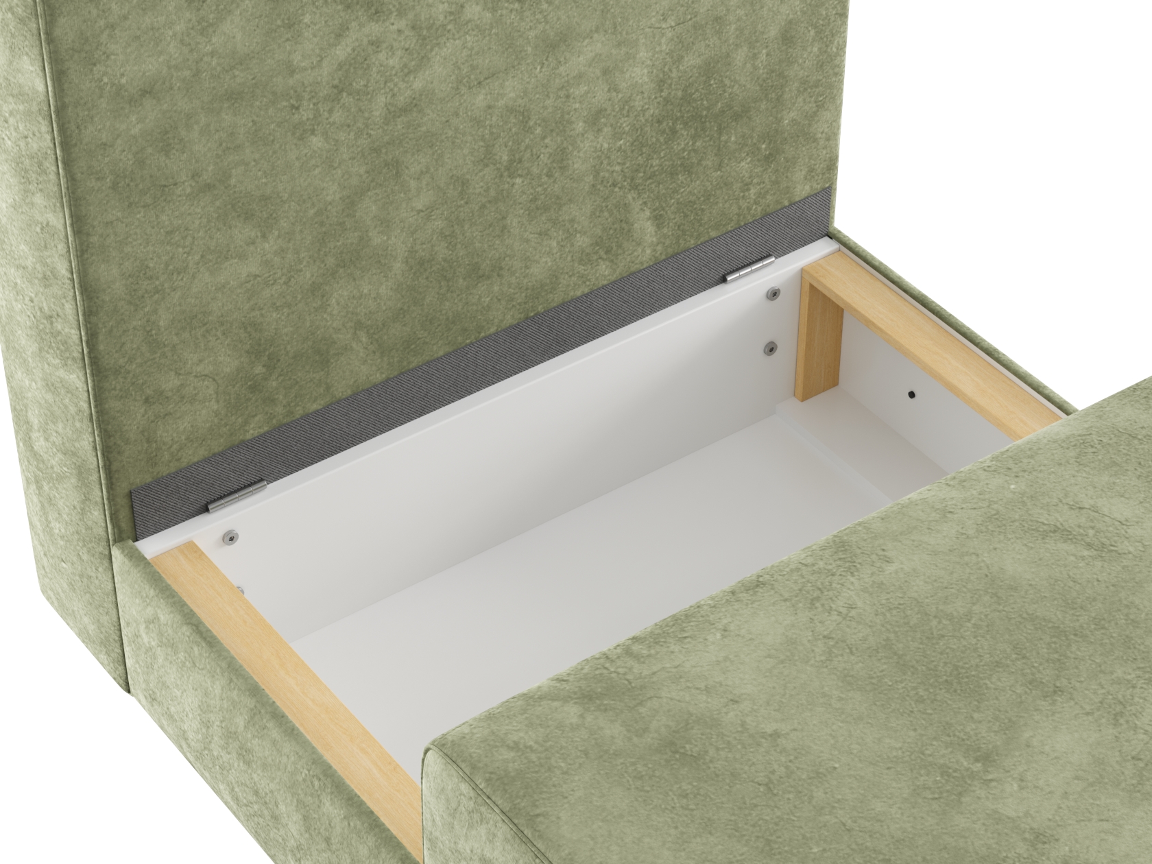 В сложенном виде модель отлично подходит для небольшой комнаты. Сиденье легко раскладывается и образует спальное место для одного человека. Невысокие ножки создают стильный акцент в интерьере. Практичный бельевой короб — важное преимущество конструкции.