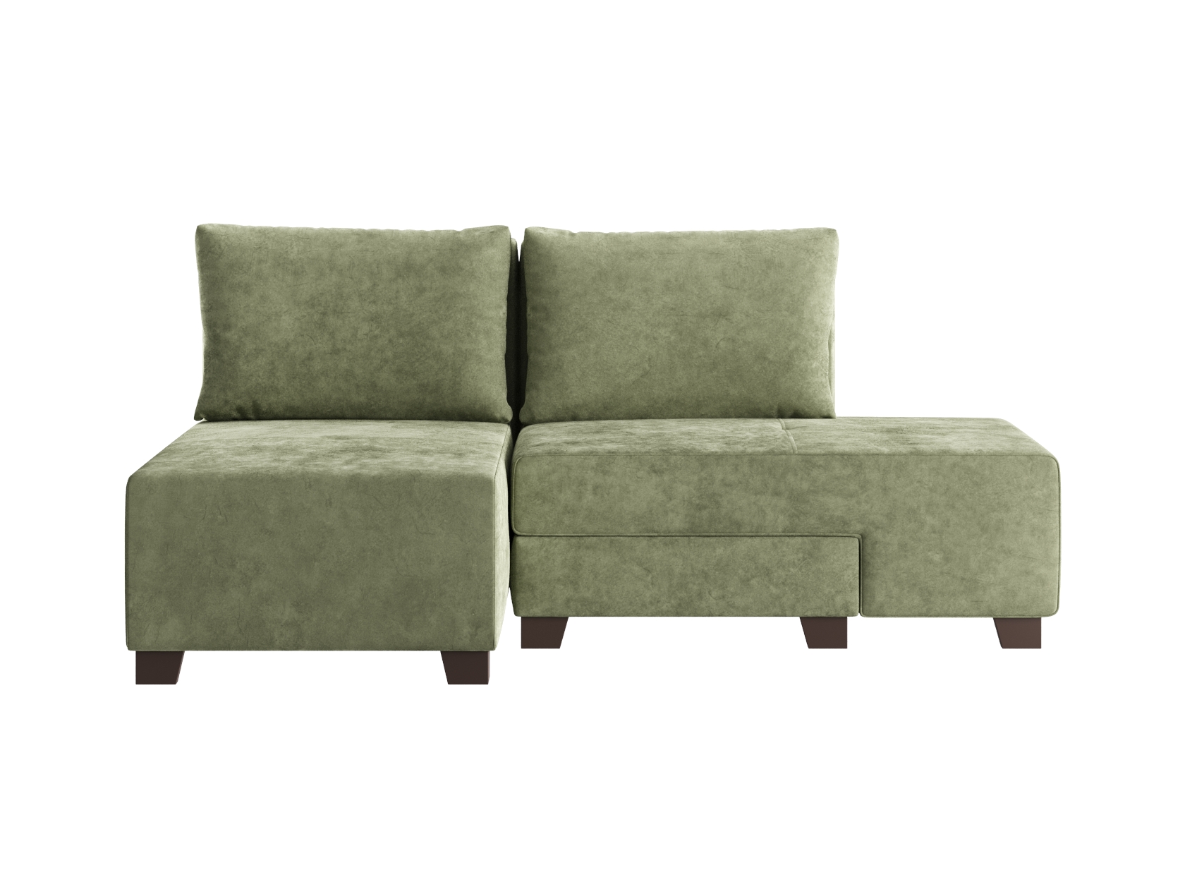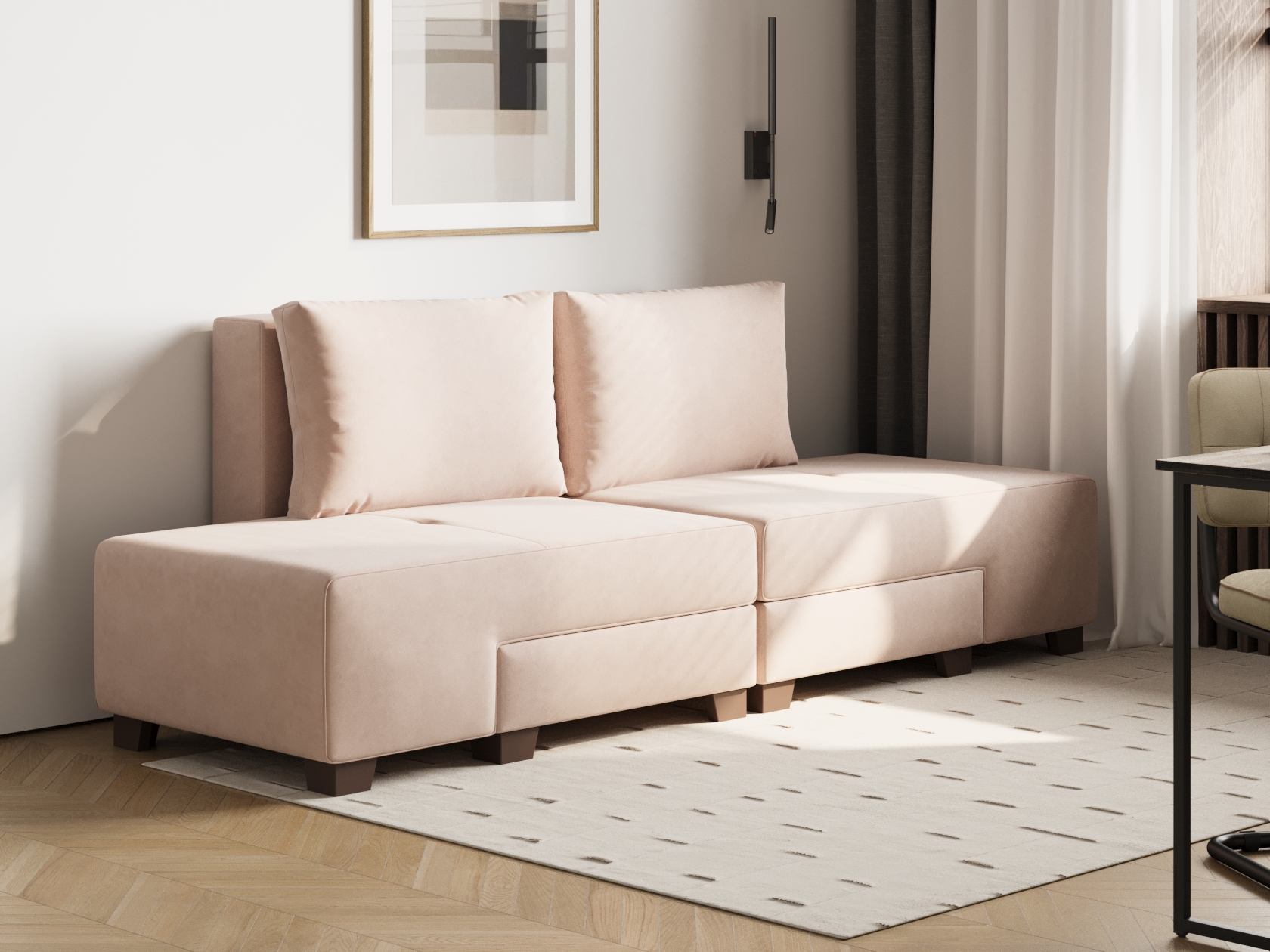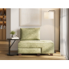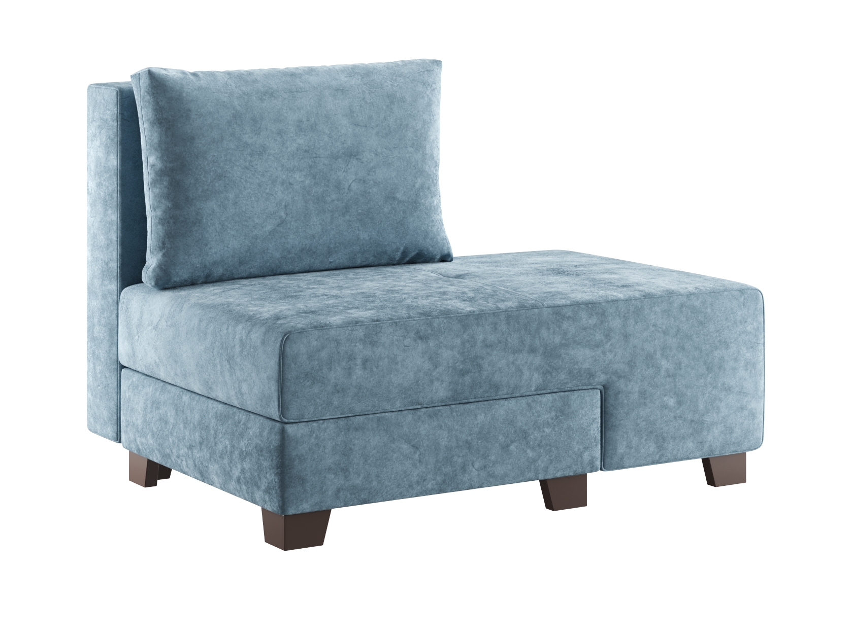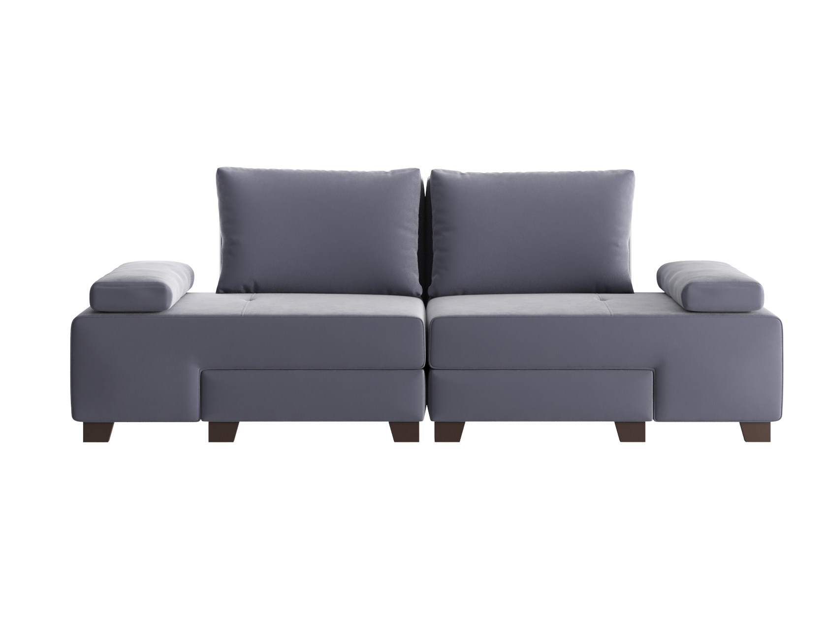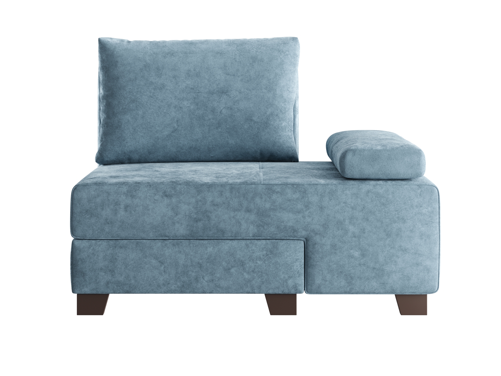 В сложенном виде модель отлично подходит для небольшой комнаты. Сиденье легко раскладывается и образует спальное место для одного человека. Невысокие ножки создают стильный акцент в интерьере. Практичный бельевой короб — важное преимущество конструкции.