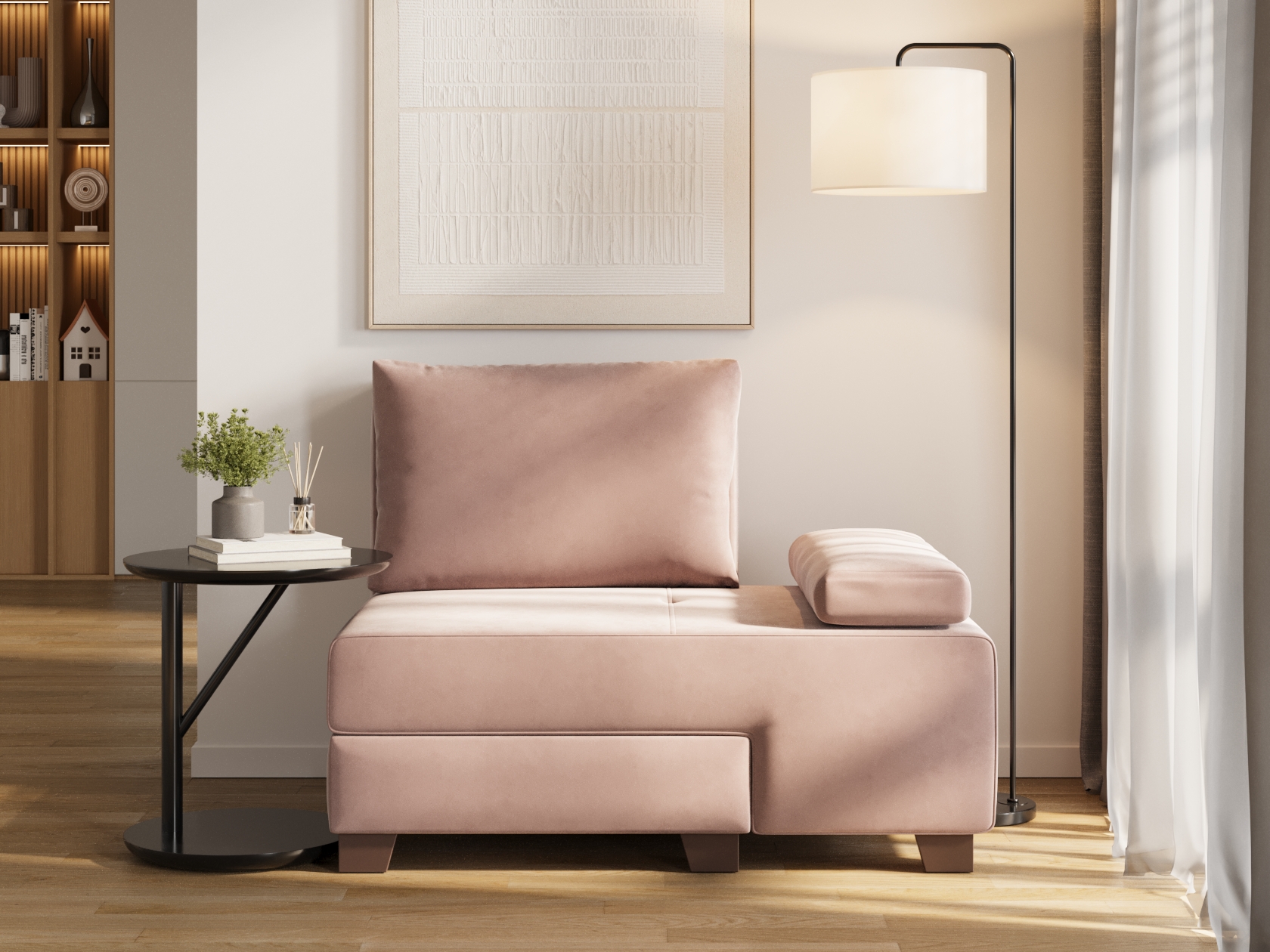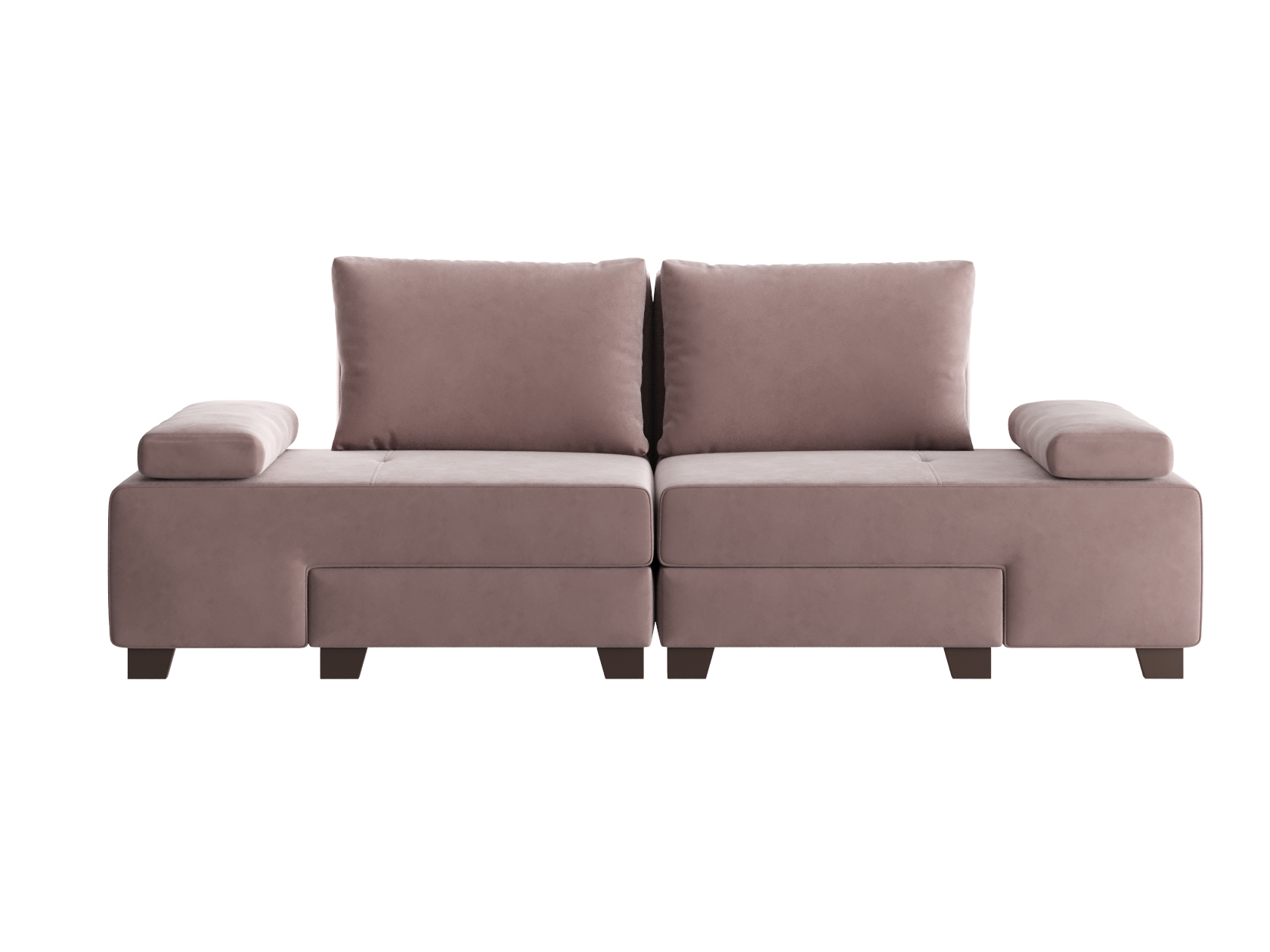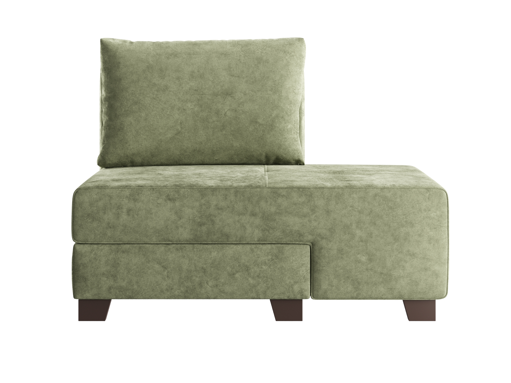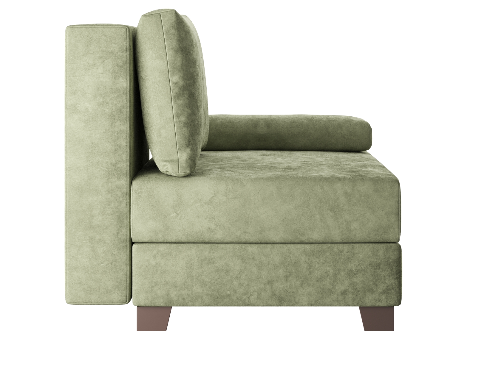 В сложенном виде модель отлично подходит для небольшой комнаты. Сиденье легко раскладывается и образует спальное место для одного человека. Невысокие ножки создают стильный акцент в интерьере. Практичный бельевой короб — важное преимущество конструкции.