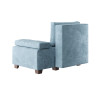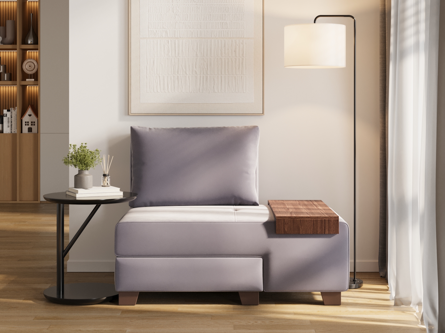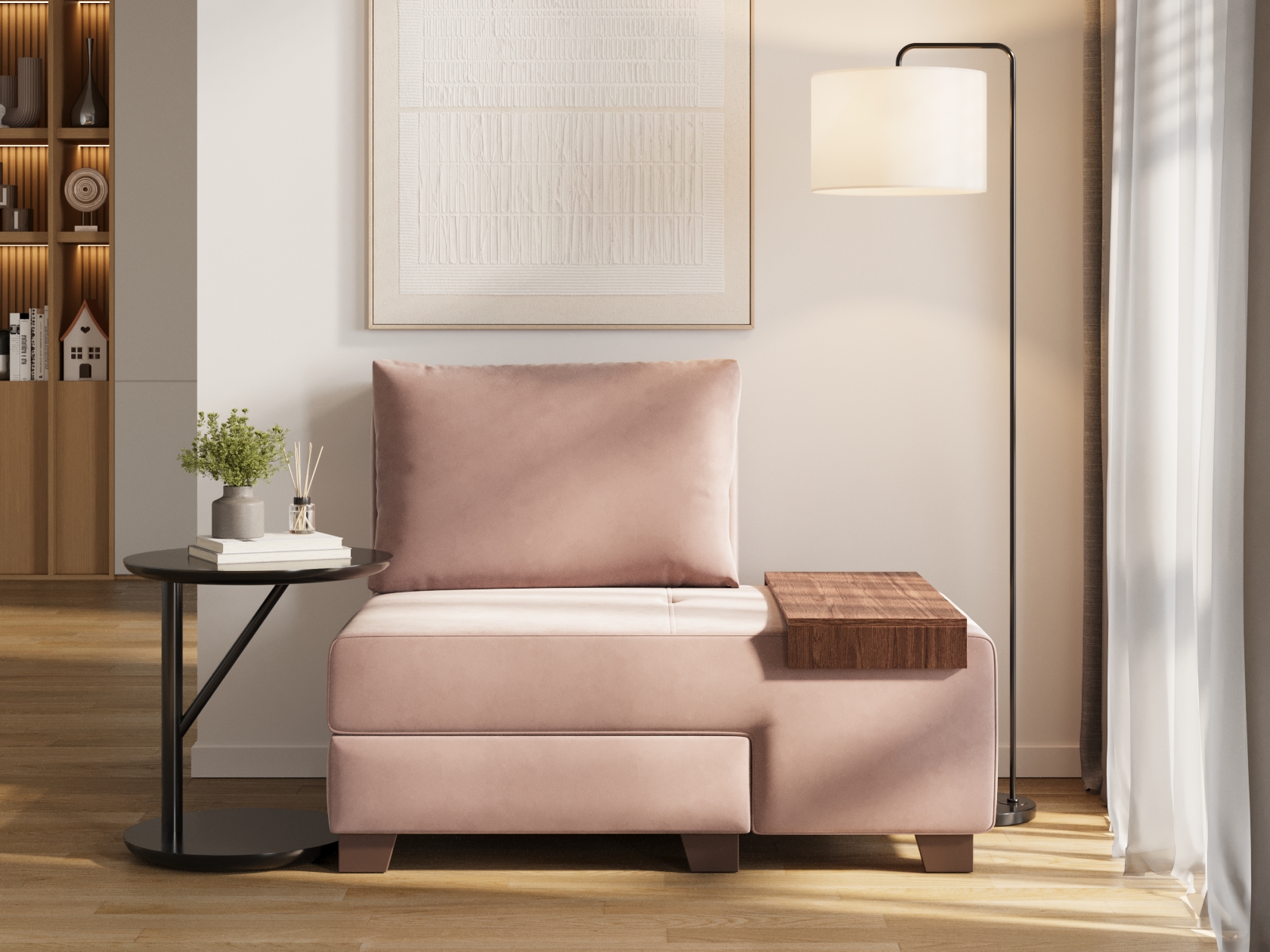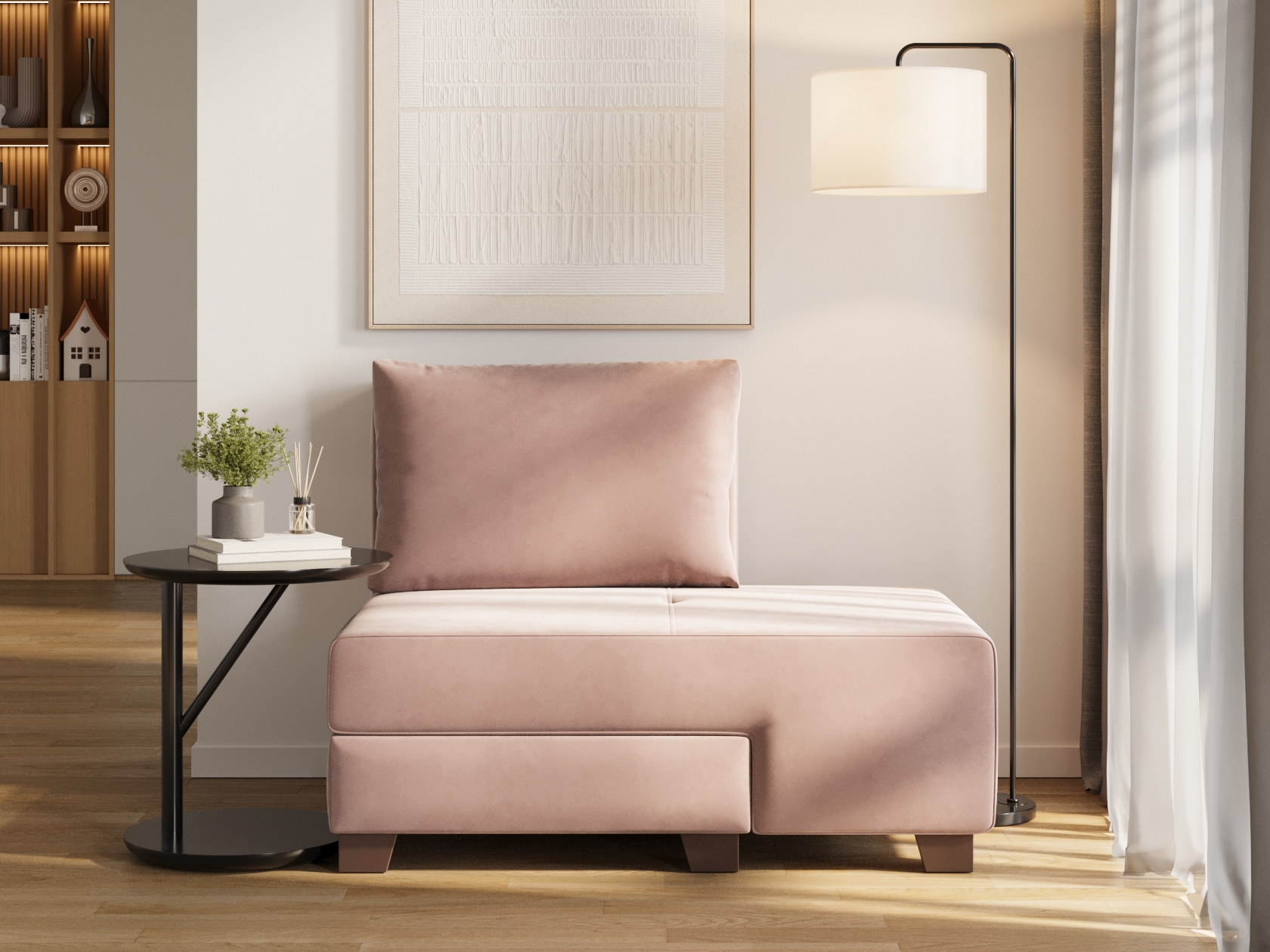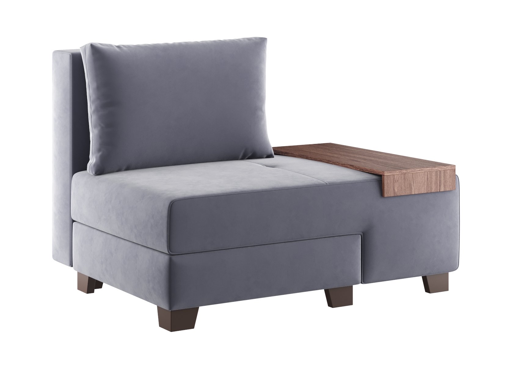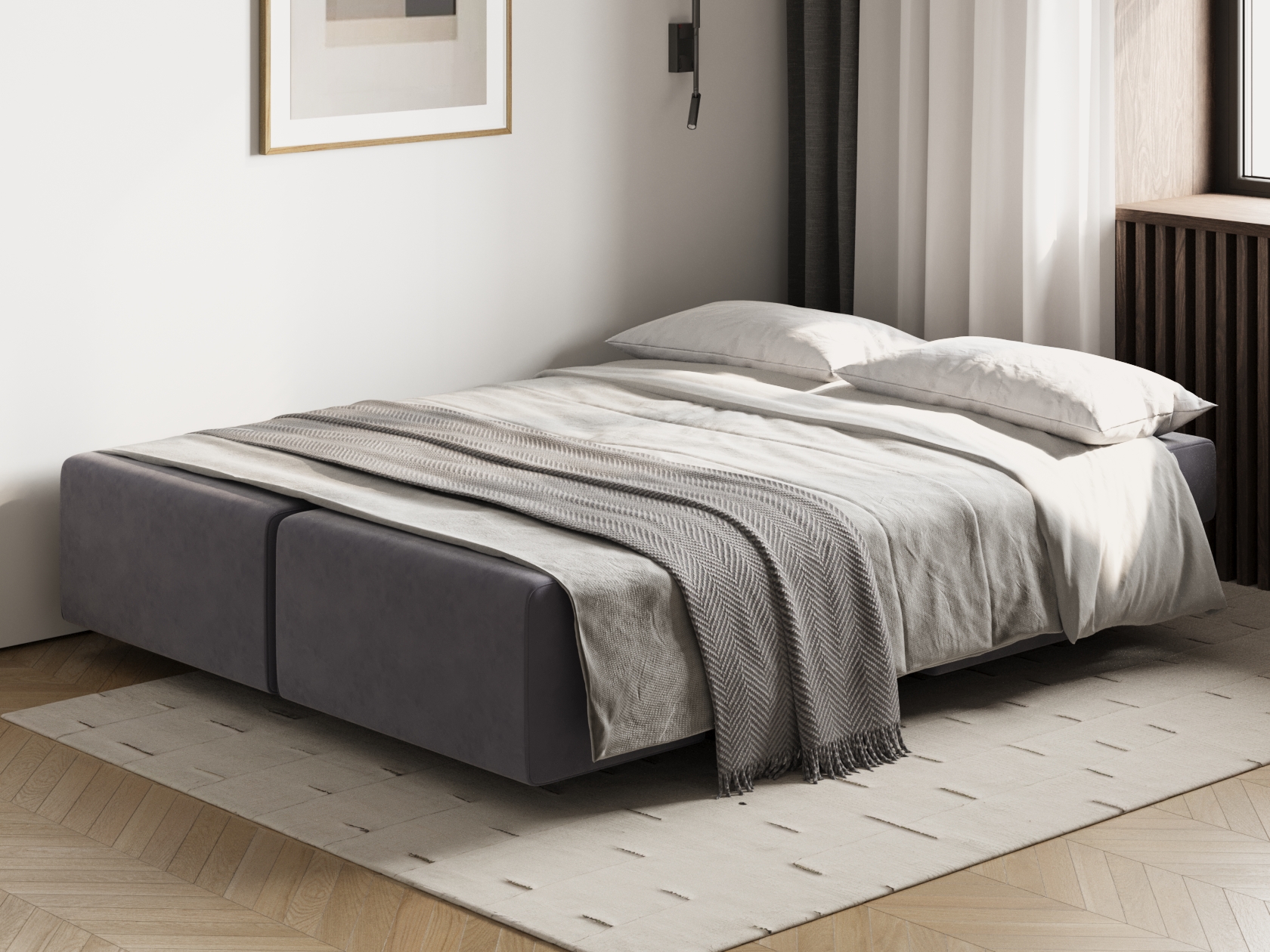 В сложенном виде модель отлично подходит для небольшой комнаты. Сиденье легко раскладывается и образует спальное место для одного человека. Невысокие ножки создают стильный акцент в интерьере. Практичный бельевой короб — важное преимущество конструкции.