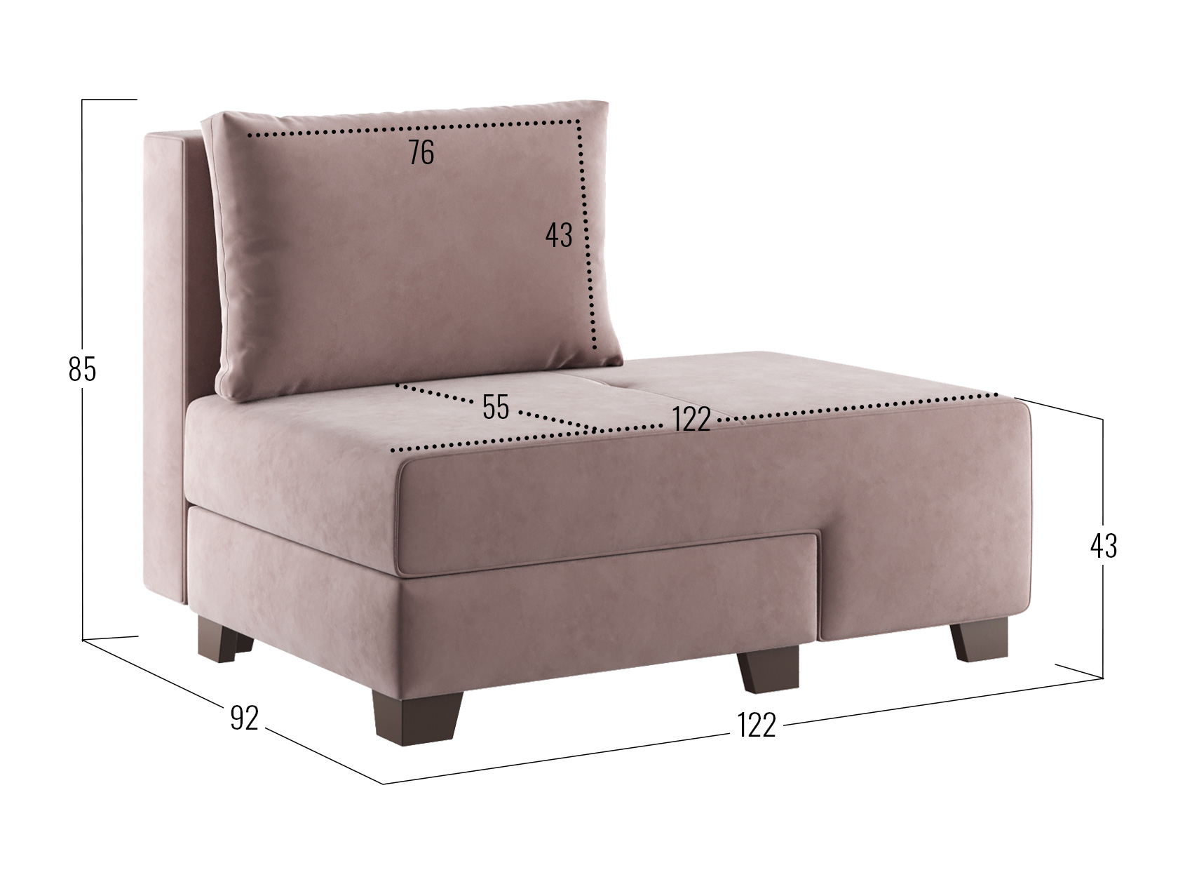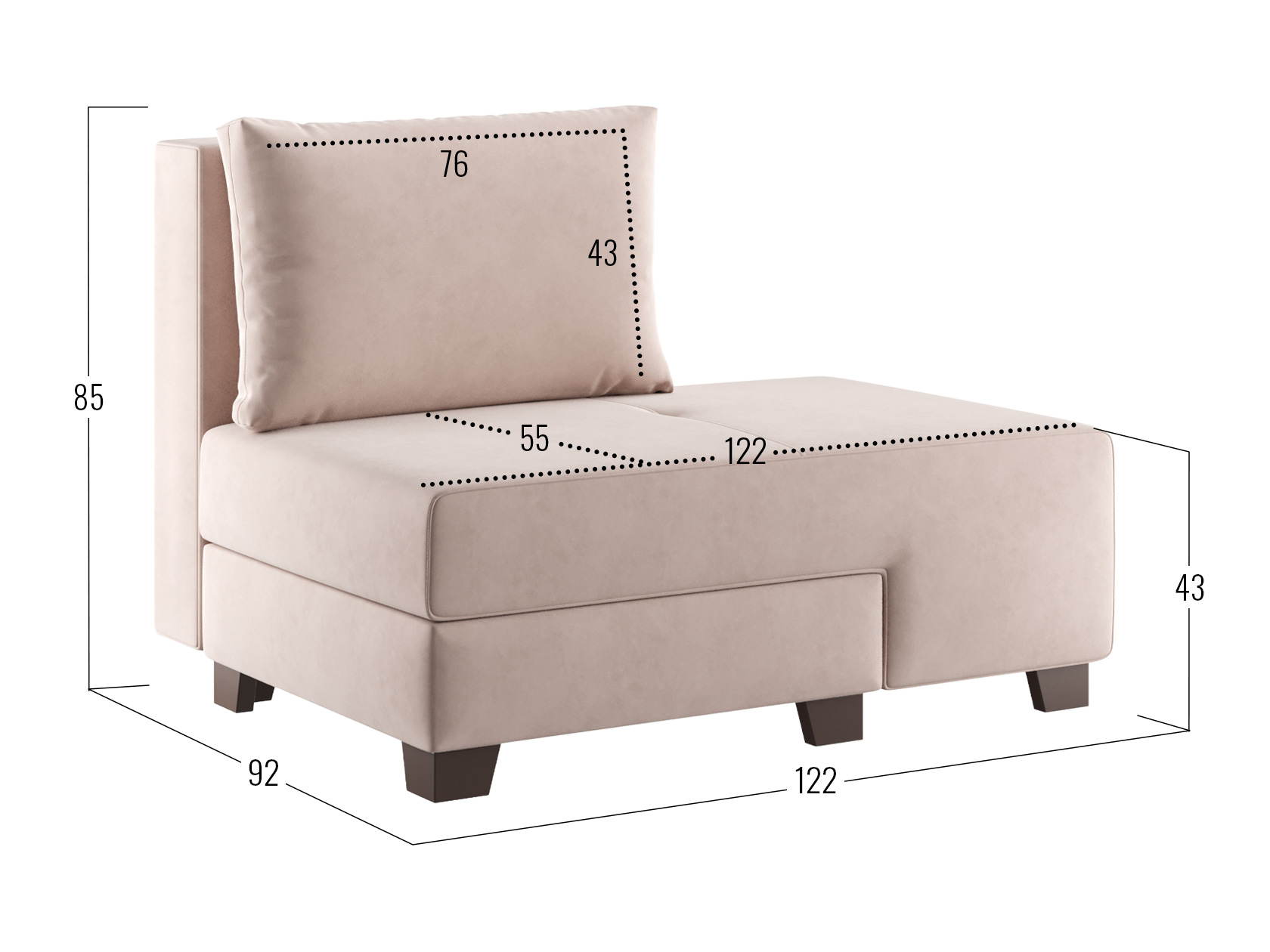 Посадочное место без подушек (ШхГ): 122 х 76 см.