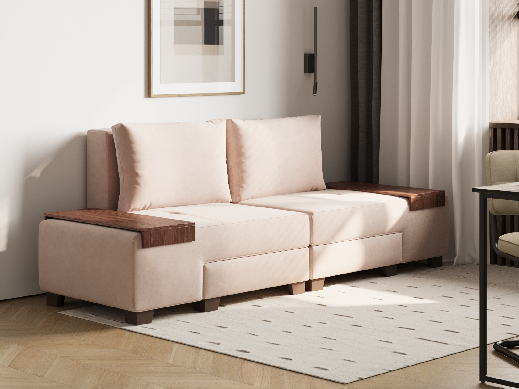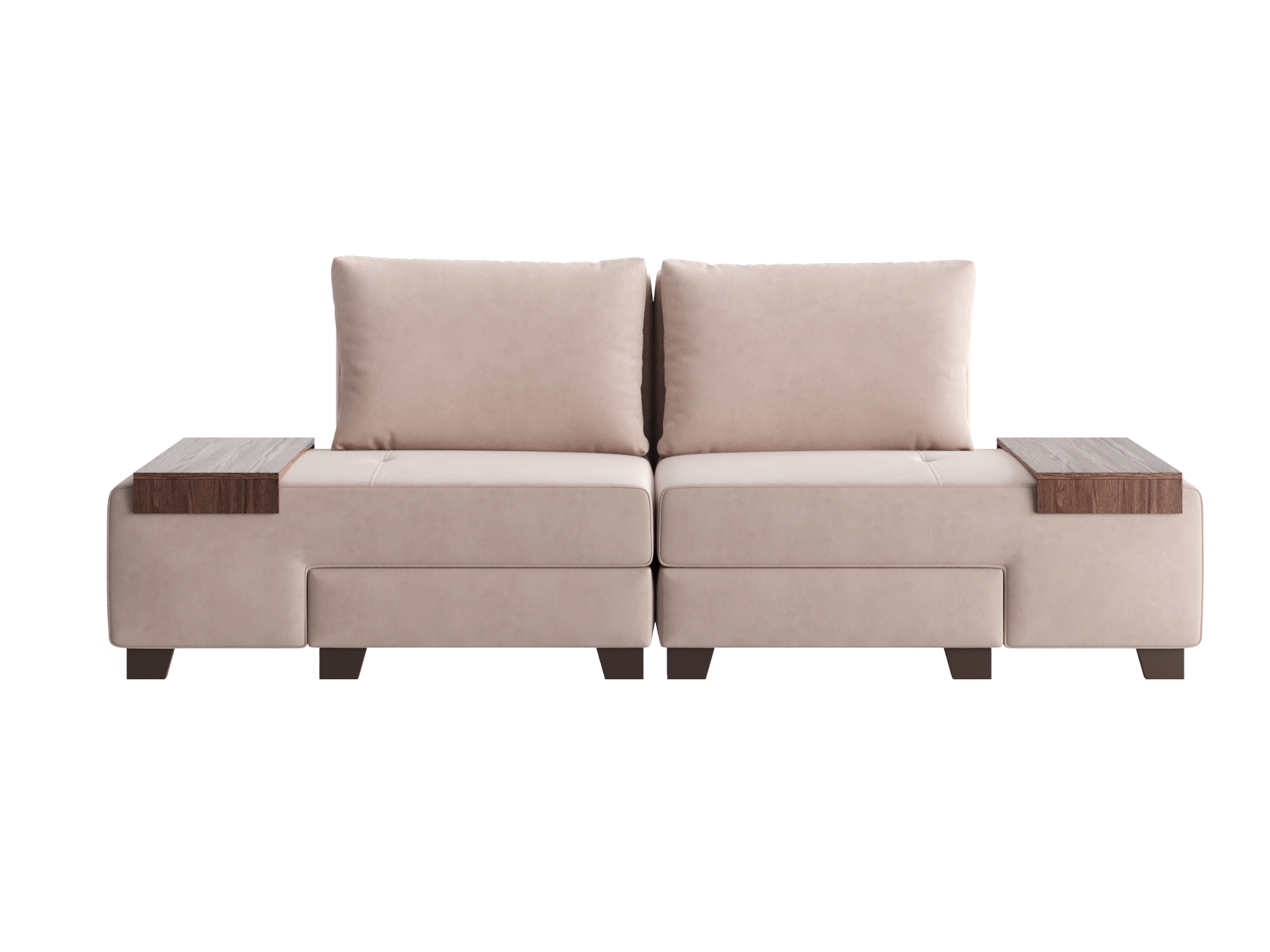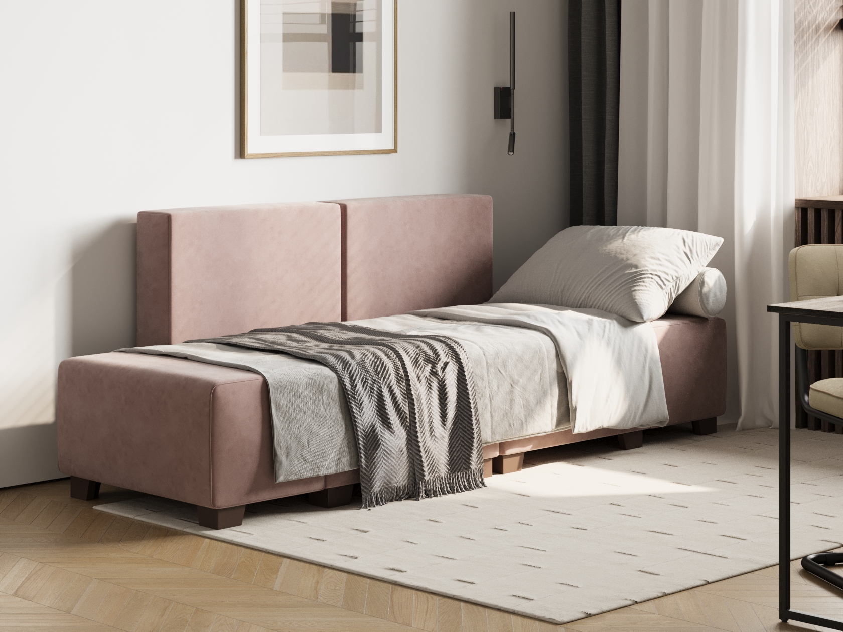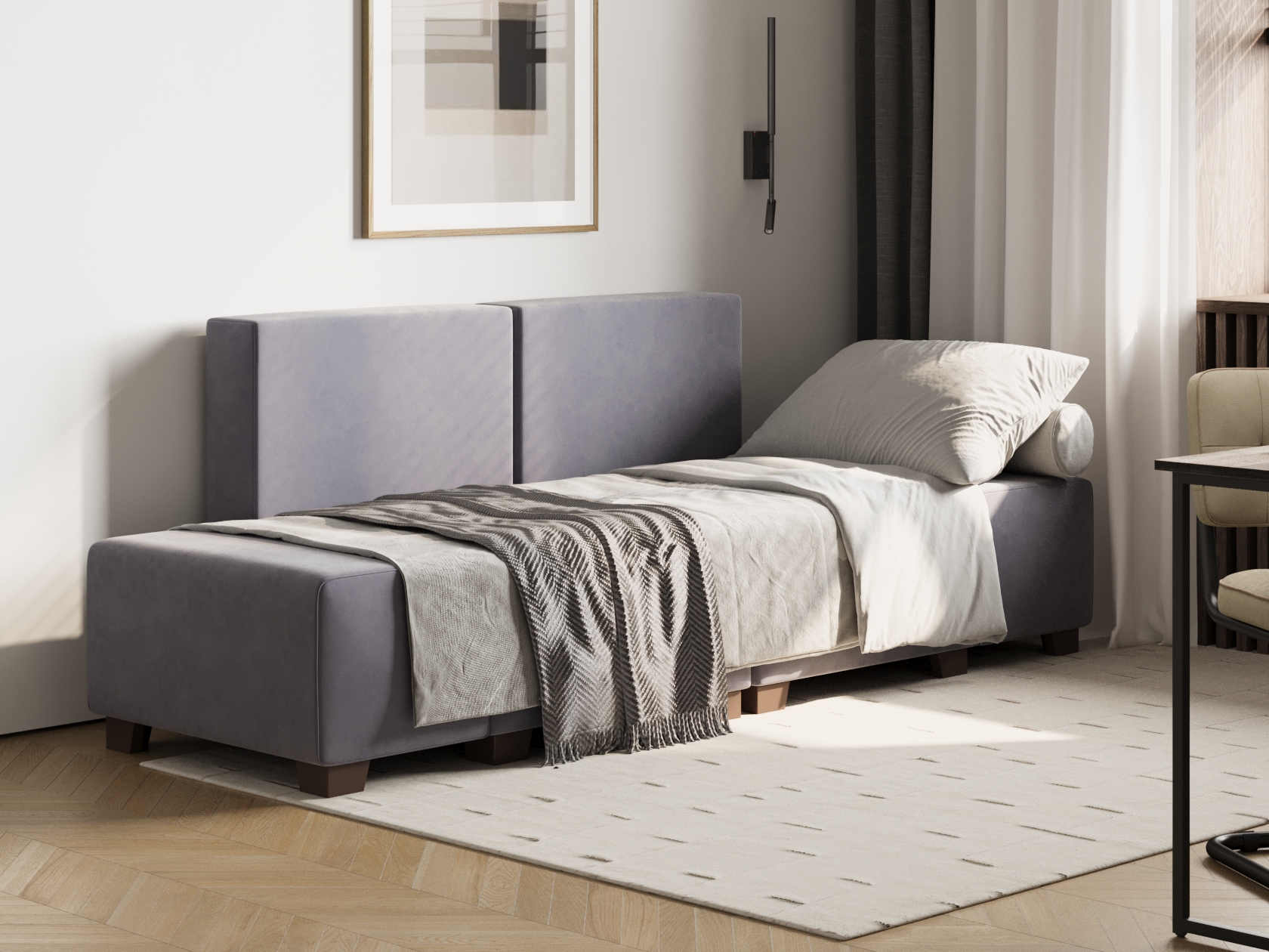 При раскладывании образуется большое спальное место, поэтому диван идеально подходит для отдыха и сна. Подушки, имитирующие подлокотники, добавляют мебели комфорт и удобство. Обивка из приятной на ощупь ткани создает уютную атмосферу, а небольшие ножки служат стильными акцентами интерьера.
