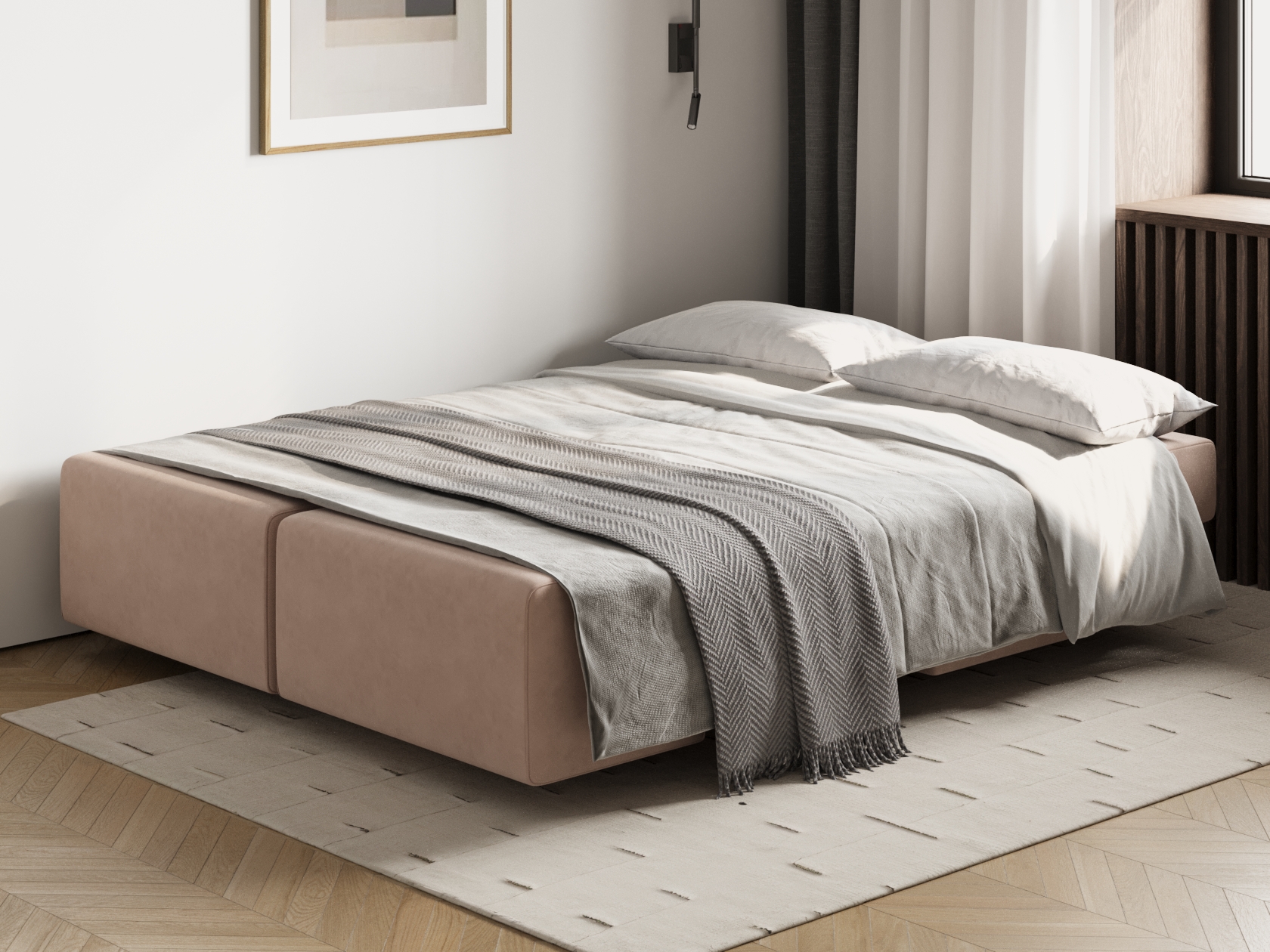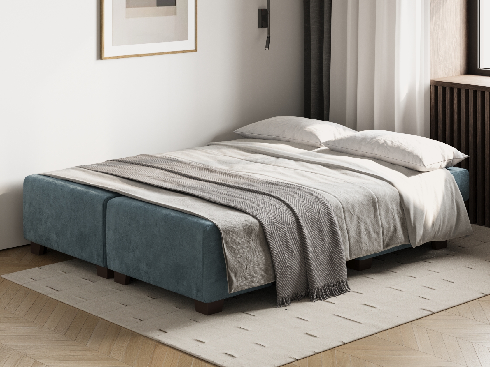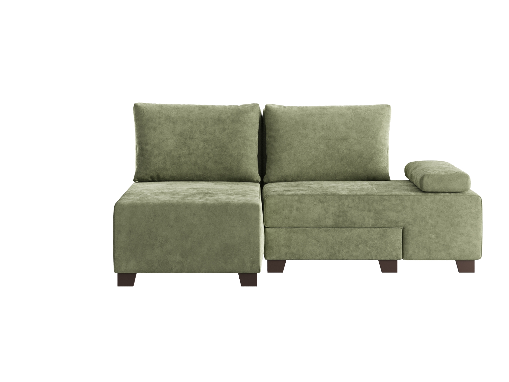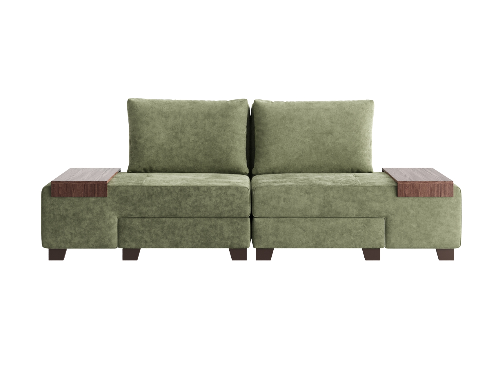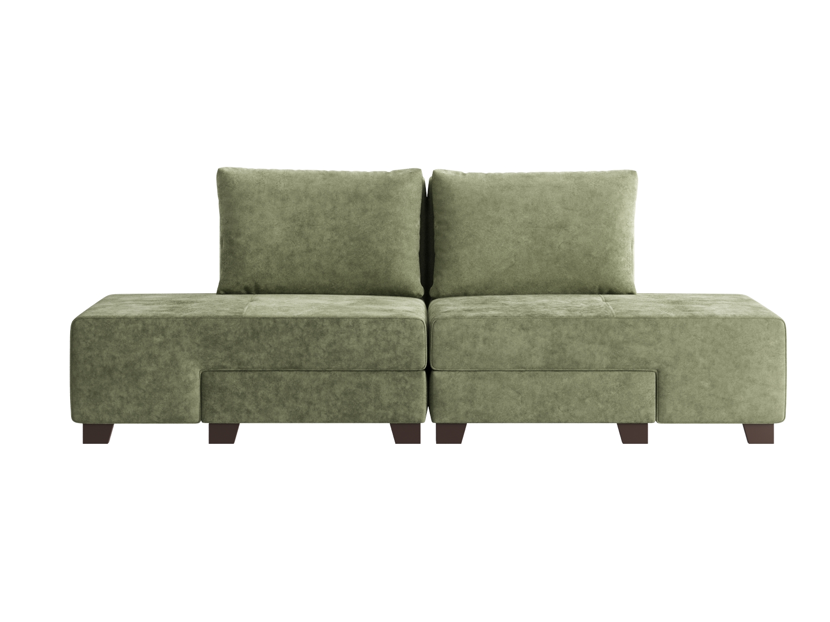 При раскладывании образуется большое спальное место, поэтому диван идеально подходит для отдыха и сна. Подушки, имитирующие подлокотники, добавляют мебели комфорт и удобство. Обивка из приятной на ощупь ткани создает уютную атмосферу, а небольшие ножки служат стильными акцентами интерьера.