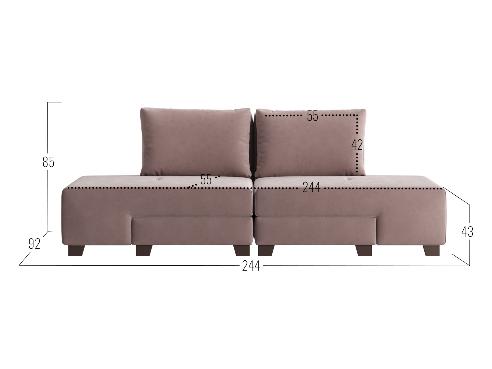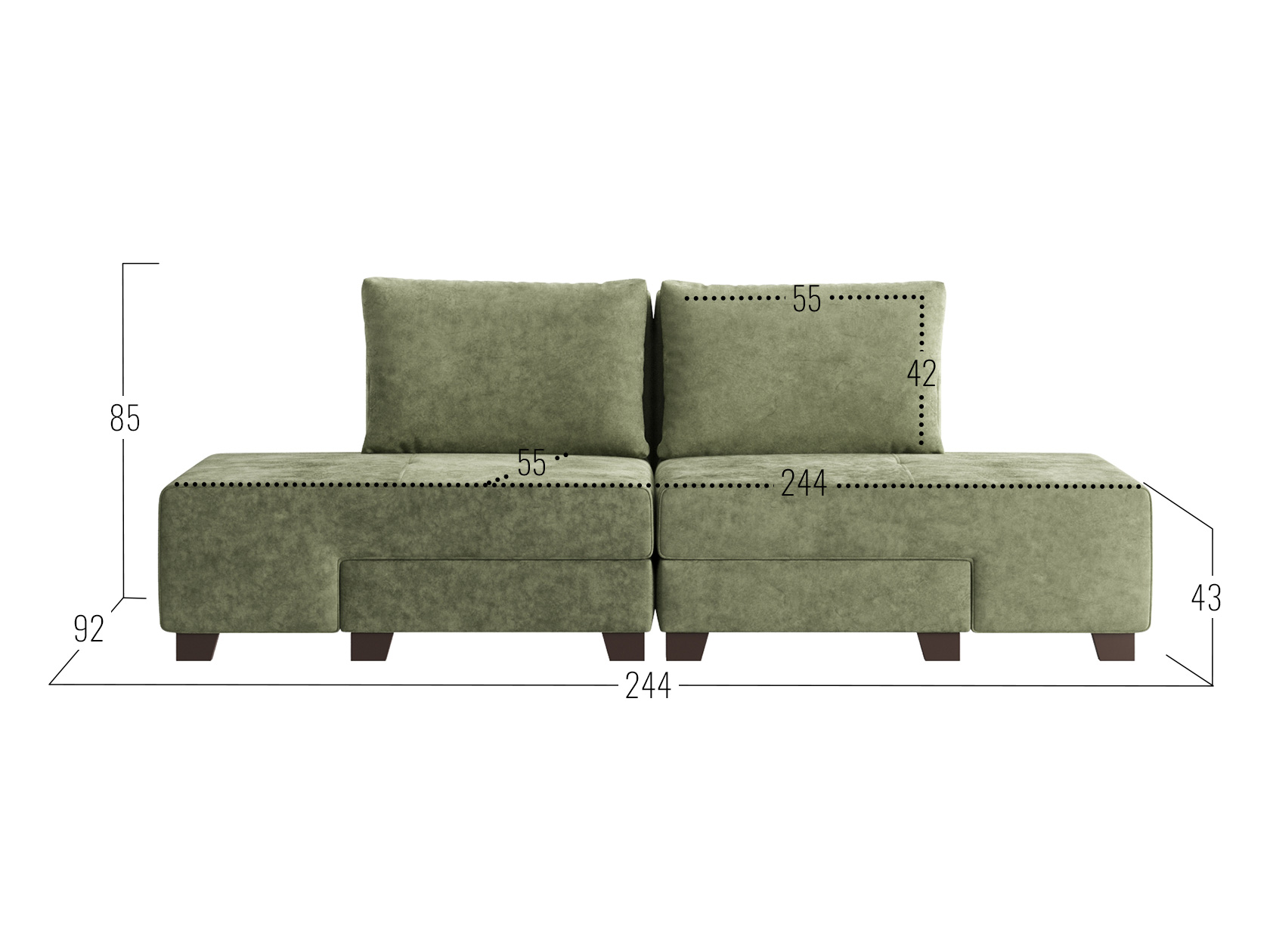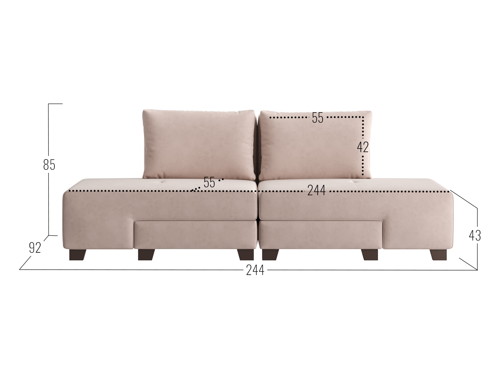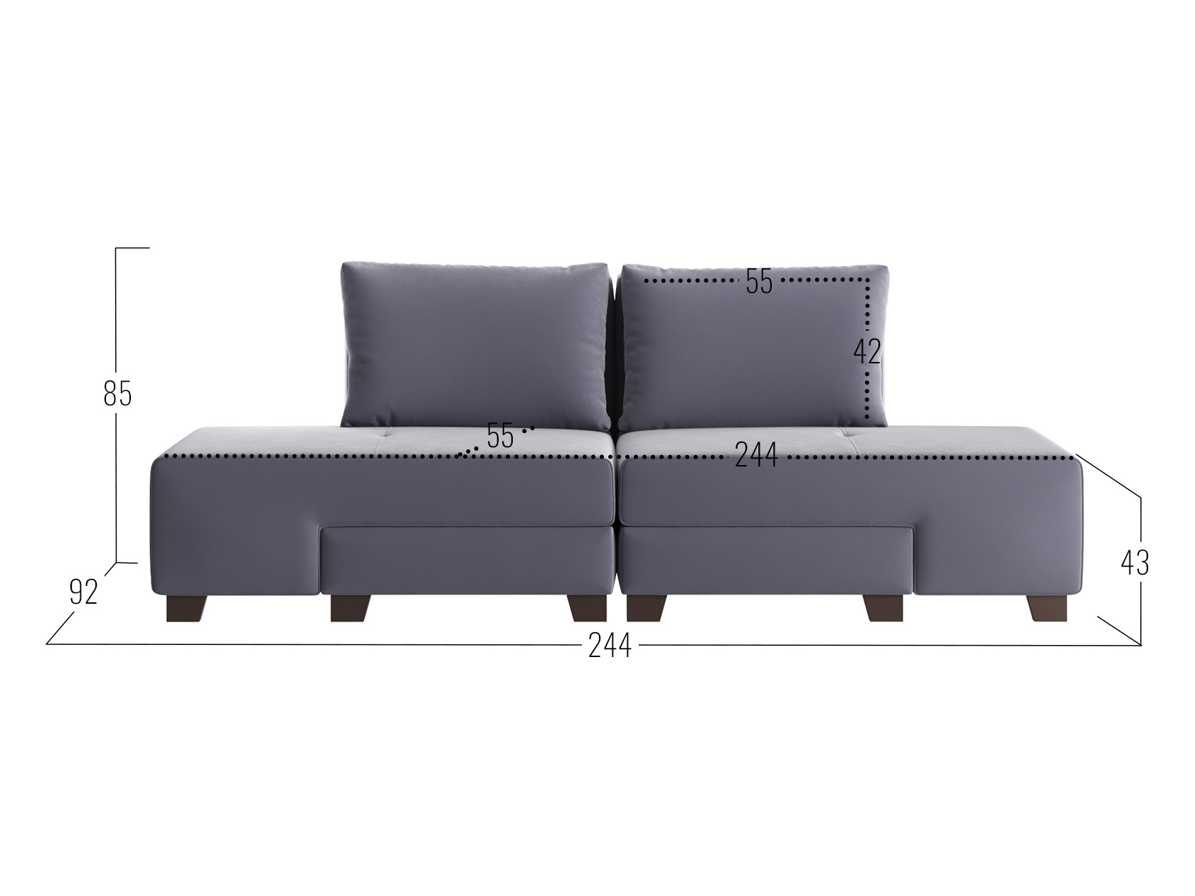 Посадочное место без подушек (ШхГ): 244 х 76 см.