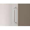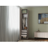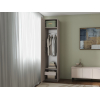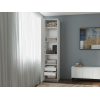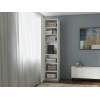 Высокую узкую конструкцию удобно расположить даже в небольшой комнате. Рамочный фасад придает мебели элегантность, а лаконичная ручка выступает небольшим акцентом.