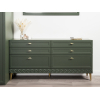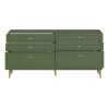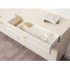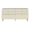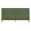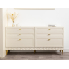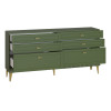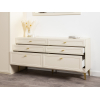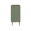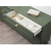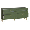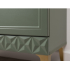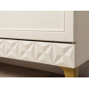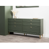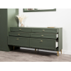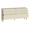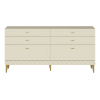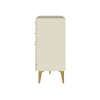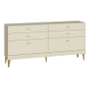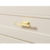 Модель заменит полноценный шкаф и поможет рационально распределить вещи. Выдвижные ящики разной глубины прекрасно подойдут для белья, аксессуаров, текстиля и прочей одежды. Изящные рамочные фасады, фрезерованный декор и высокие золотистые ножки в цвет фурнитуры придают комоду особый шик.