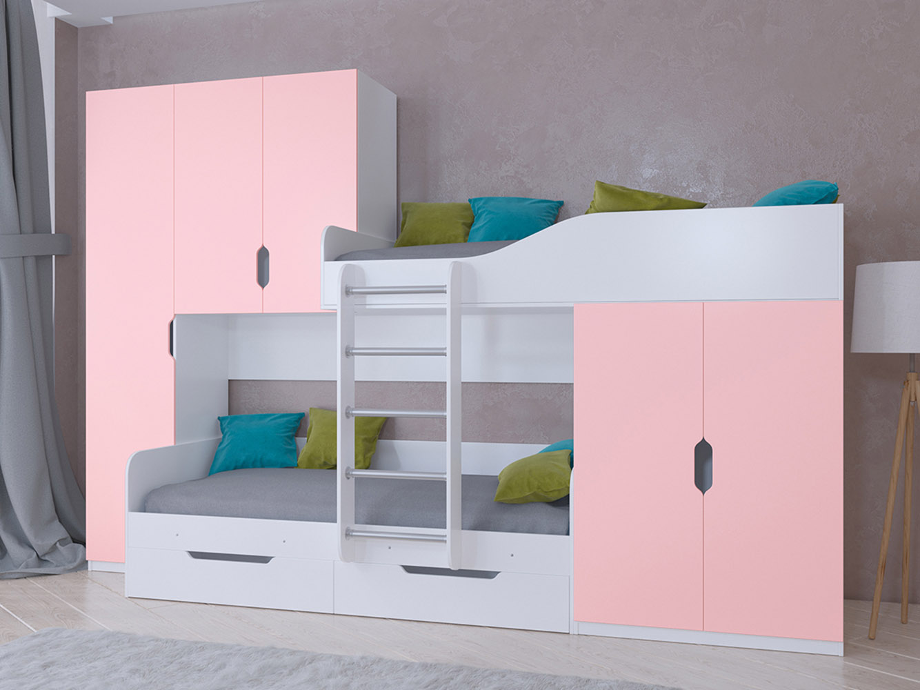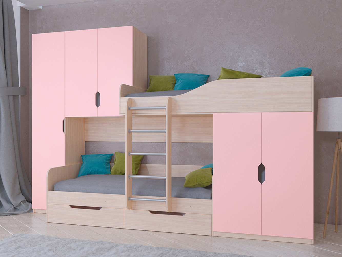 Большое количество мест для хранения вещей и игрушек поможет малышу самому научиться наводить порядок. Разнообразие цветовых решений позволяет подобрать комплекс под любой интерьер.