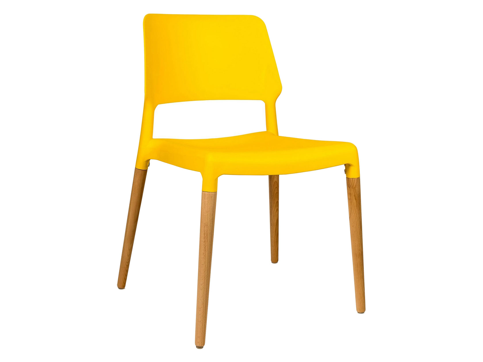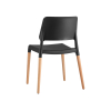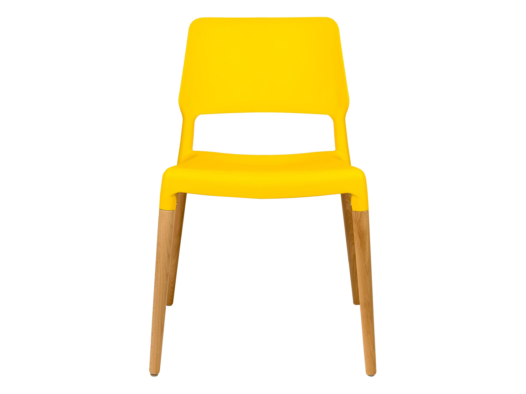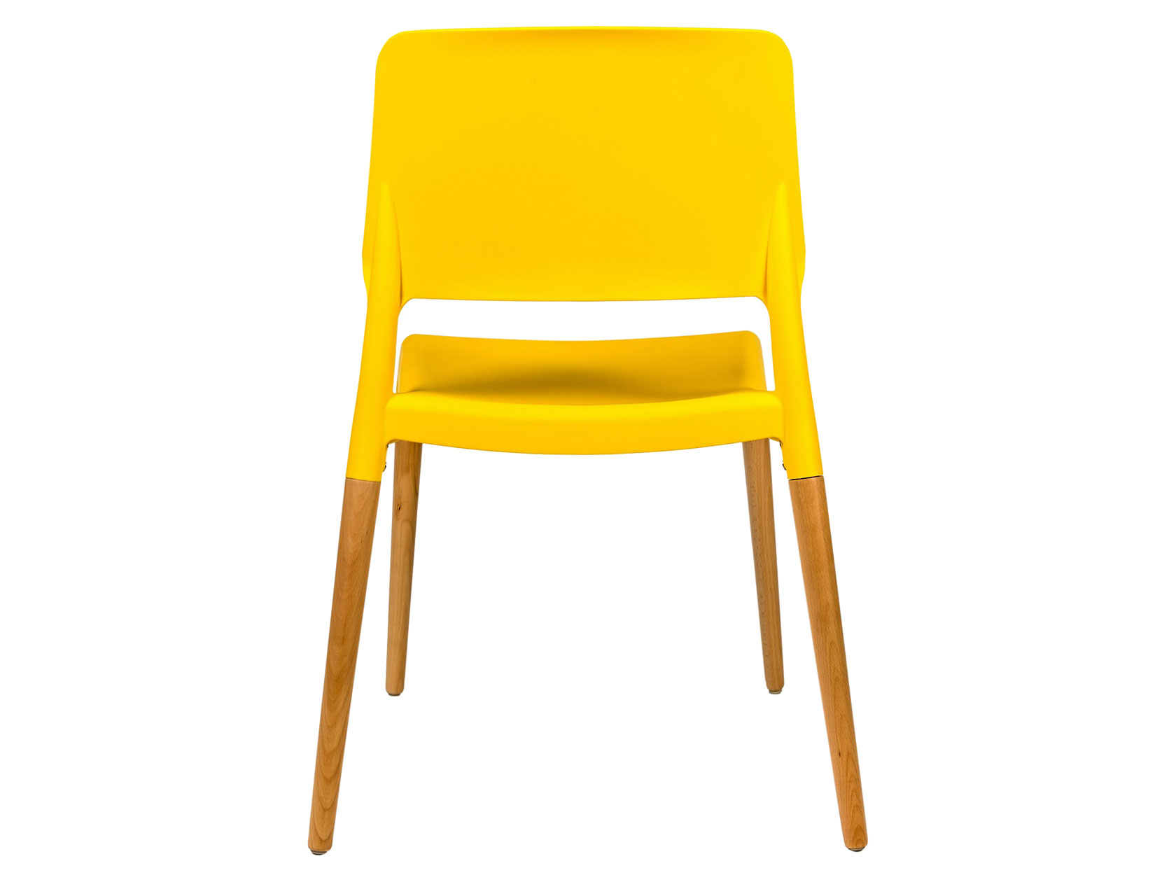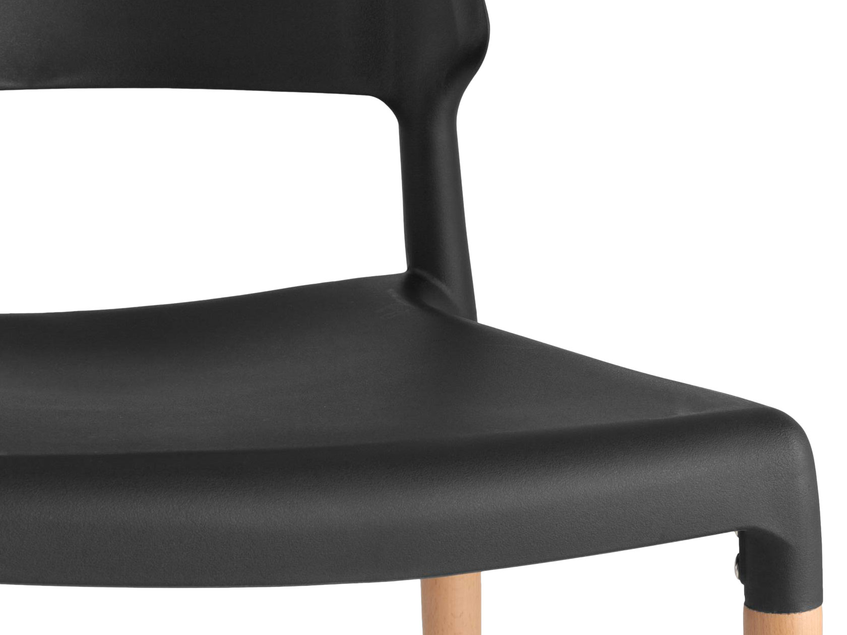 Сиденье из качественного полипропилена плавно перетекает в спинку. Этот материал не чувствителен к внешним воздействиям и очень прост в уходе. Строгость сиденья смягчается теплом деревянных ножек из массива бука. Дерево в сочетании с пластиком смотрится современно и свежо.