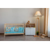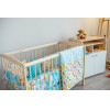 Кроватка сделана из массива березы. Дно кровати реечное.